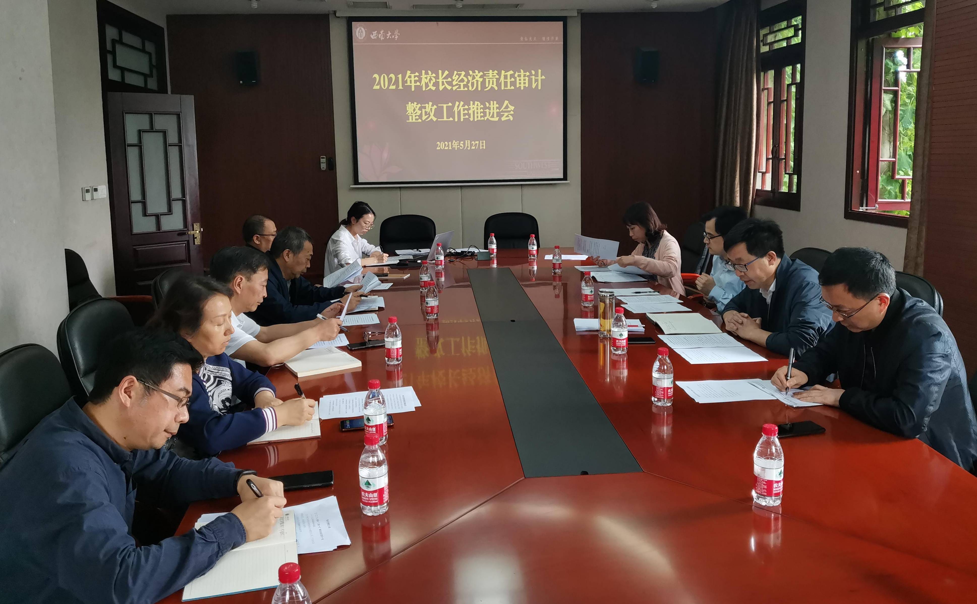 5月27日下午,2021年校长经济责任审计整改工作推进会在行署楼A栋一会议室召开,会议由副校长赵国华主持,校长经济责任审计整改工作领导小组成员单位及相关责任单位主要负责人参加。