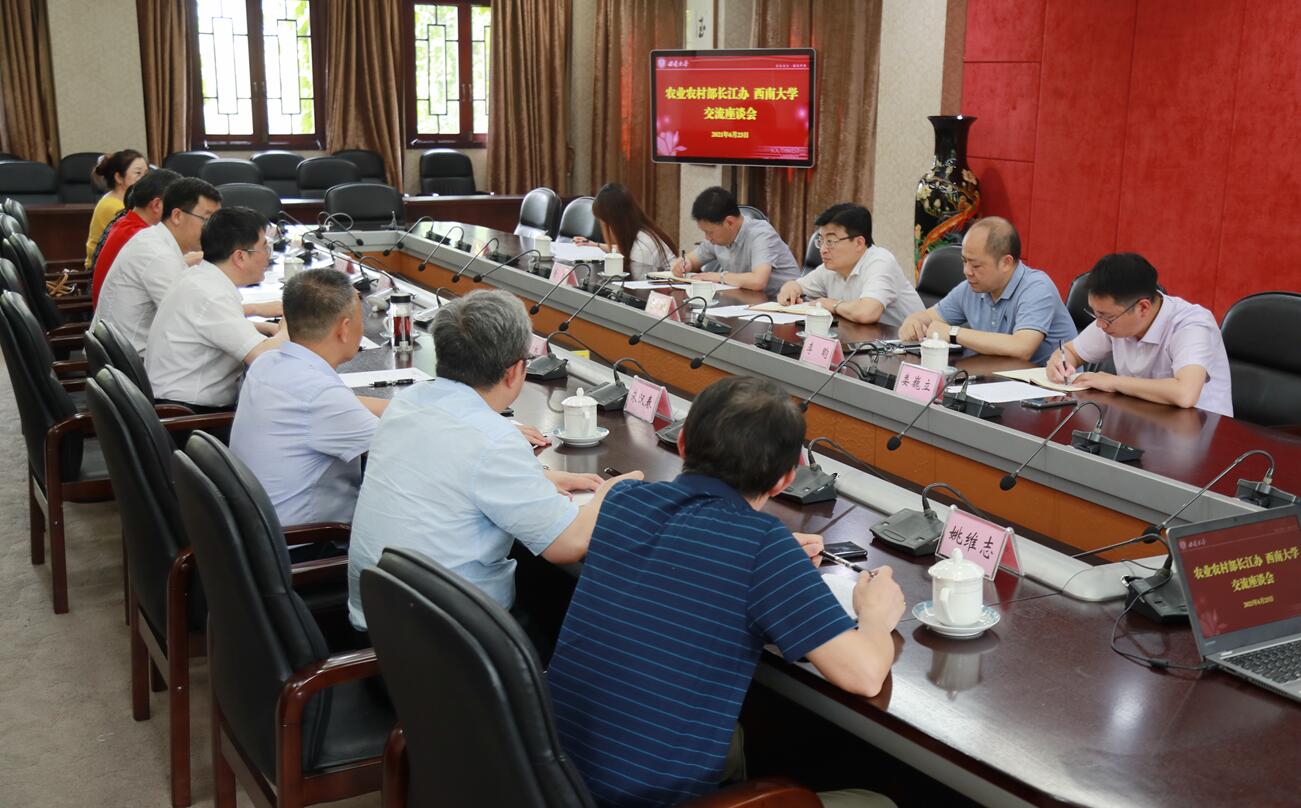 为促进科研成果转化,保护长江水生生物多样性,6月23日,农业农村部长江渔政监督管理办公室(以下简称长江办)主任马毅一行来校交流访谈。重庆市农业农村委相关人员参加会议。学校党委书记李旭锋、副校长赵国华出席交流座谈会。会议由学校副校长赵国华主持。