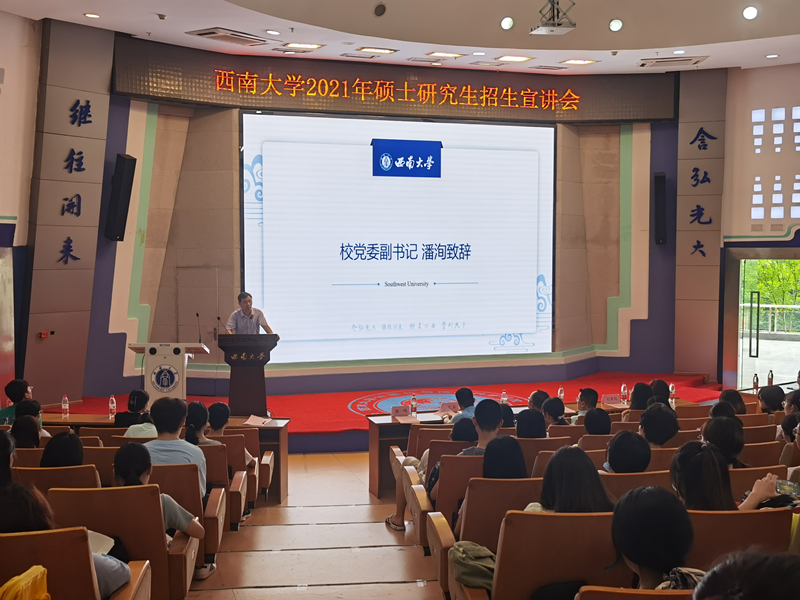 为帮助学生更好地了解考研政策,做好考研准备,提高学生考研成功率,提高学校研究生教育质量,学校于7月7日在25教学楼举办2021年硕士研究生招生宣讲会。学校党委副书记潘洵出席会议,相关职能部门、培养单位负责同志及全校200余名本科生参加会议。