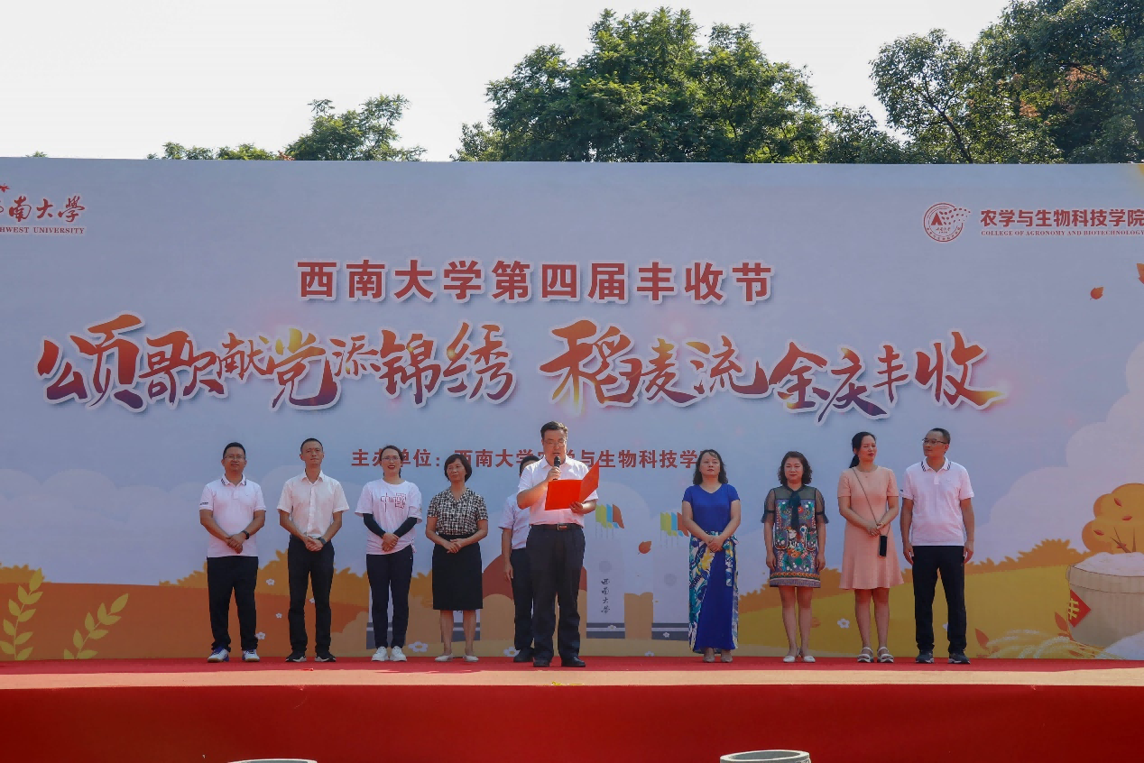 重庆市委农业农村工委、重庆市农业农村委员会委员袁德胜,学校副校长王进军,重庆市农业农村委种业处处长骆凤玲出席开幕式,学校研究生工作部、学生工作部、团委、人力资源部、教务处、农学与生物科技学院有关负责人以及各学院师生代表参加开幕式,一起分享丰收的喜悦,共谋乡村全面振兴新篇章。