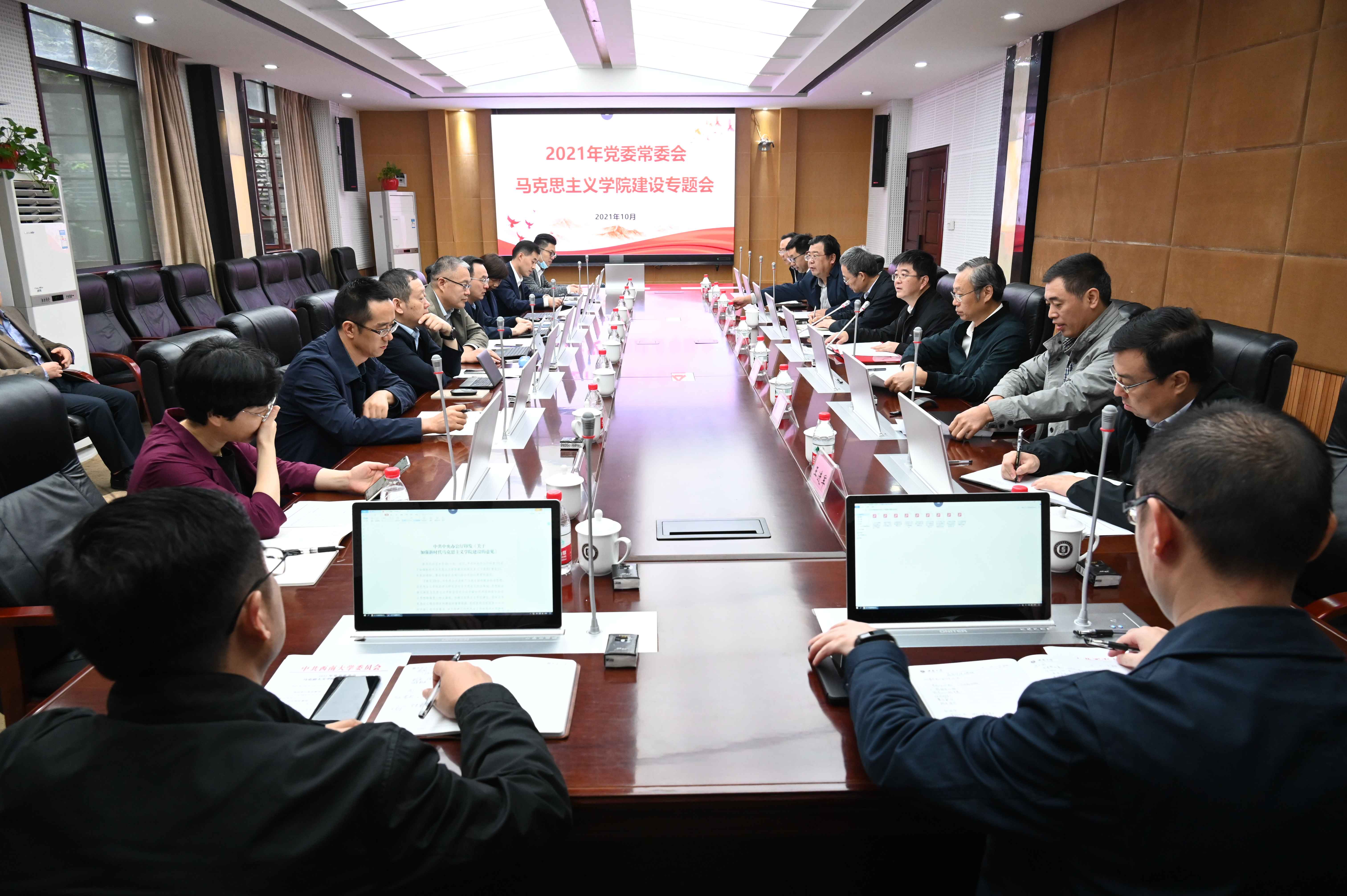 10月13日,学校党委常委会专题研究马克思主义学院建设工作,会议在马克思主义学院310会议室举行。学校党委书记李旭锋主持会议。党政办公室、党委宣传部、纪委办公室、发展规划与学科建设部、教务处、研究生院、社科处等相关职能部门负责人,马克思主义学院班子成员列席会议。