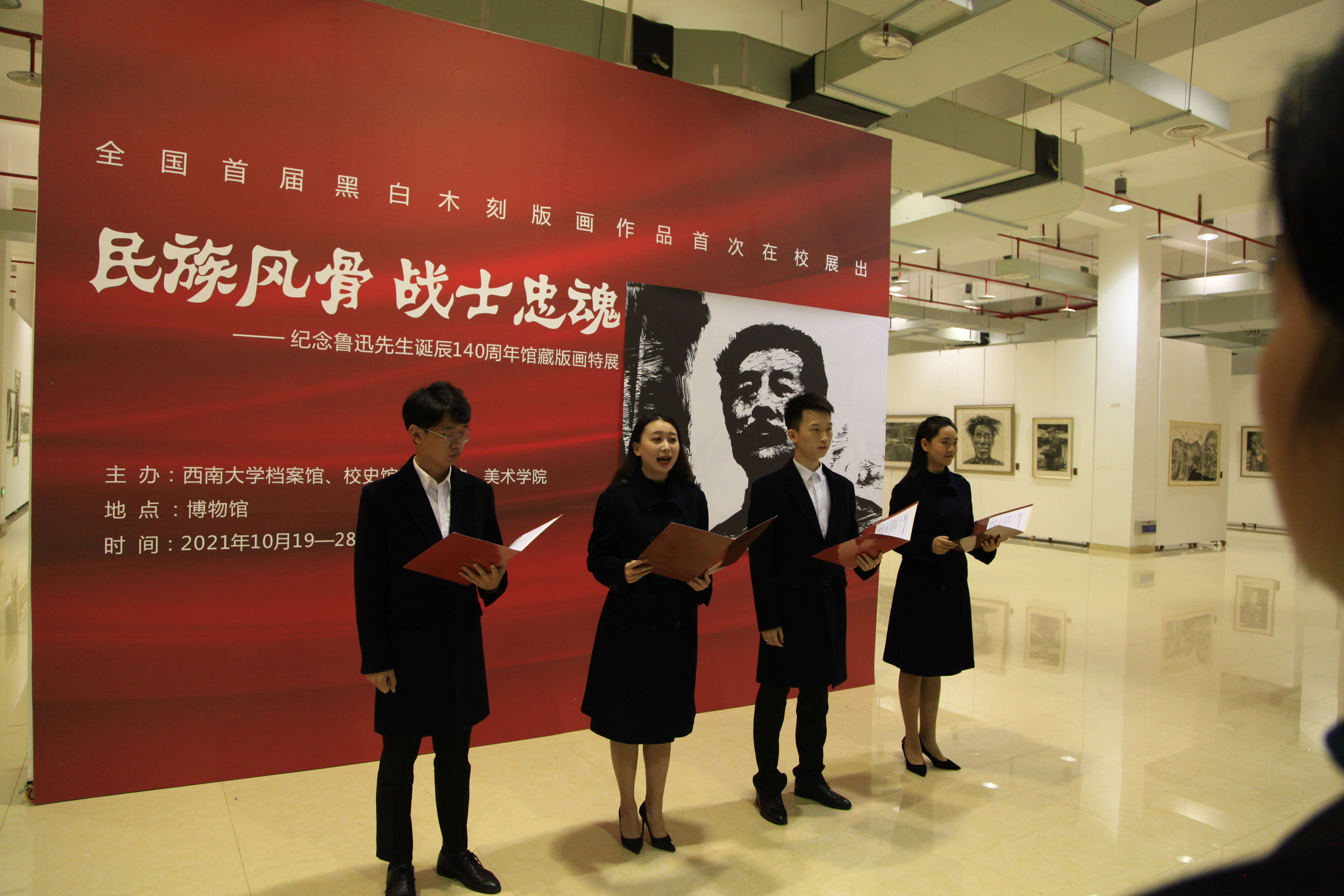 值得一提的是,在开展前三天,美术学院的8名版画方向研究生满怀对鲁迅先生的崇敬心情,紧急创作了16幅版画作品参加本次展览,借此向鲁迅先生致敬,表达对先生倡导的新兴木刻版画的传承。开展仪式上,学校校史宣讲团学生还诵读鲁迅先生的《自题小像》等4首经典诗歌作品,使得观众对这位文学、艺术巨匠更加崇敬。