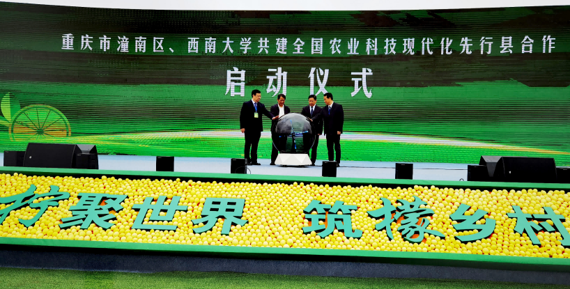 10月21日,副校长王进军应邀参加2021中国·重庆潼南国际柠檬节并举行学校与潼南区共建全国农业科技现代化先行县启动仪式。重庆市政协副主席陈贵云、农业农村部科技教育司二级巡视员张文、市农业农村委副主任唐双福、潼南区委书记张安疆、区长李成群等领导出席启动仪式。