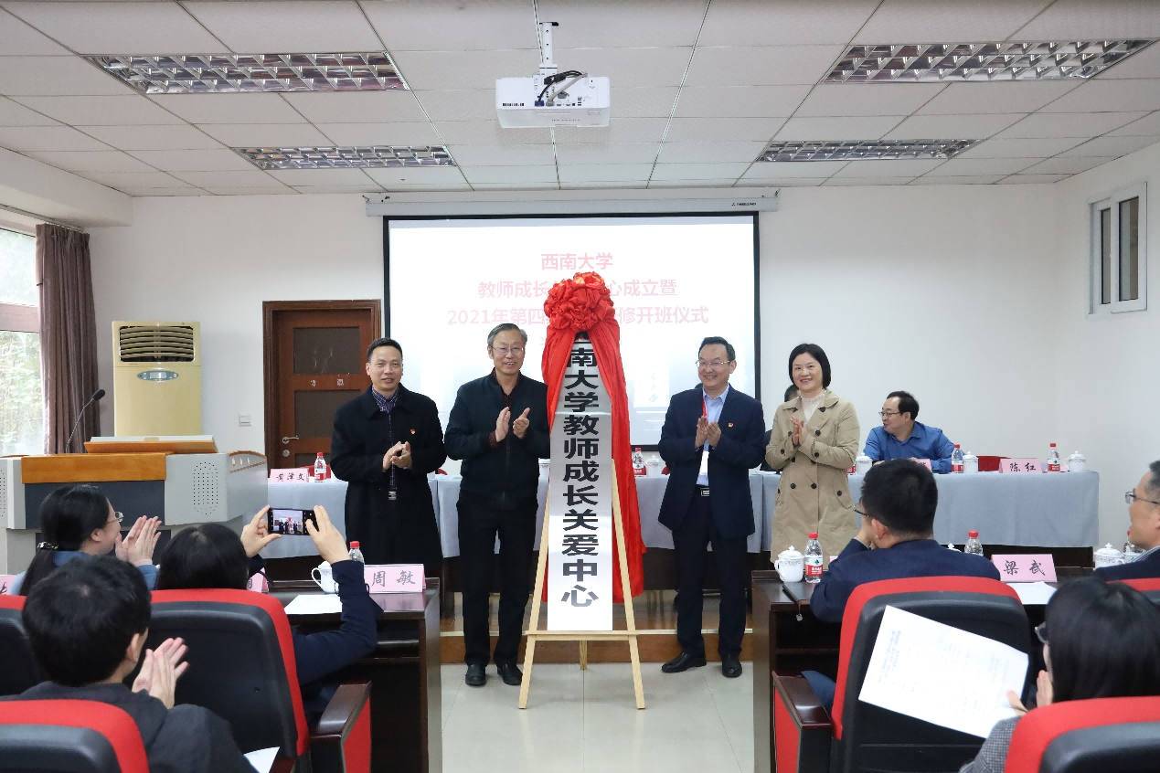 心理学部部长陈红在发言时表示,学部精心筛选了一批骨干教师提供专业心理服务,助力全校教职工都成为幸福的进取者。心理学部心理咨询与培训中心主任杨发辉老师与2021年第四期国情研修班学员分享教师如何进行成长关爱。