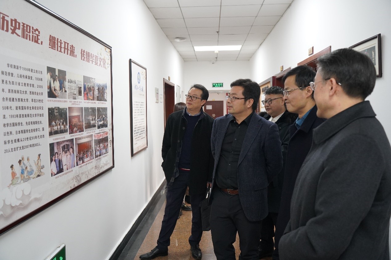 舒刚波为在校正在举行的“2021年重庆市高校外事管理干部能力提升培训班”作题为《新时代教育对外开放形势》的专题讲座。舒刚波还实地考察国际合作与交流处、港澳台办公室、国际学院,并详细了解学校国际化及对港澳台教育交流合作开展情况。