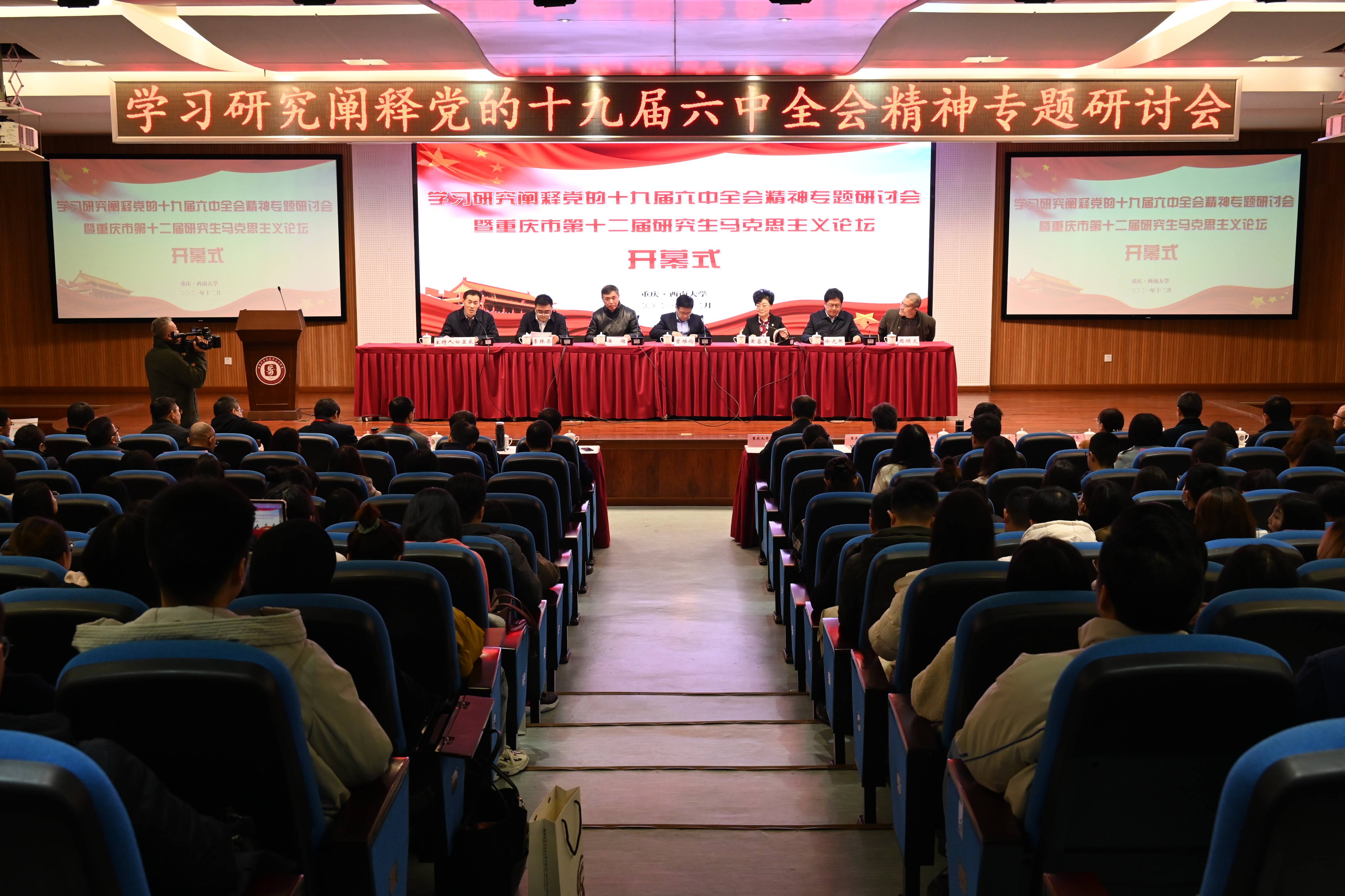 12月11日,学习研究阐释党的十九届六中全会精神专题研讨会暨重庆市第十二届研究生马克思主义论坛在学校马克思主义学院举行。中共重庆市委宣传部副部长曾维伦、中共重庆市委党史研究室副主任徐光煦、中共重庆市委教育工委宣教处处长李林齐、重庆市社科联规划评奖办调研员周顺文、taptap点点官方网站党委副书记潘洵、教育部高校思政课教指委咨询委员黄蓉生等出席开幕式。来自taptap点点官方网站、重庆大学等10余所高校马克思主义学院的领导、老师和研究生代表200余人参加会议,会议由学校马克思主义学院院长白显良主持。