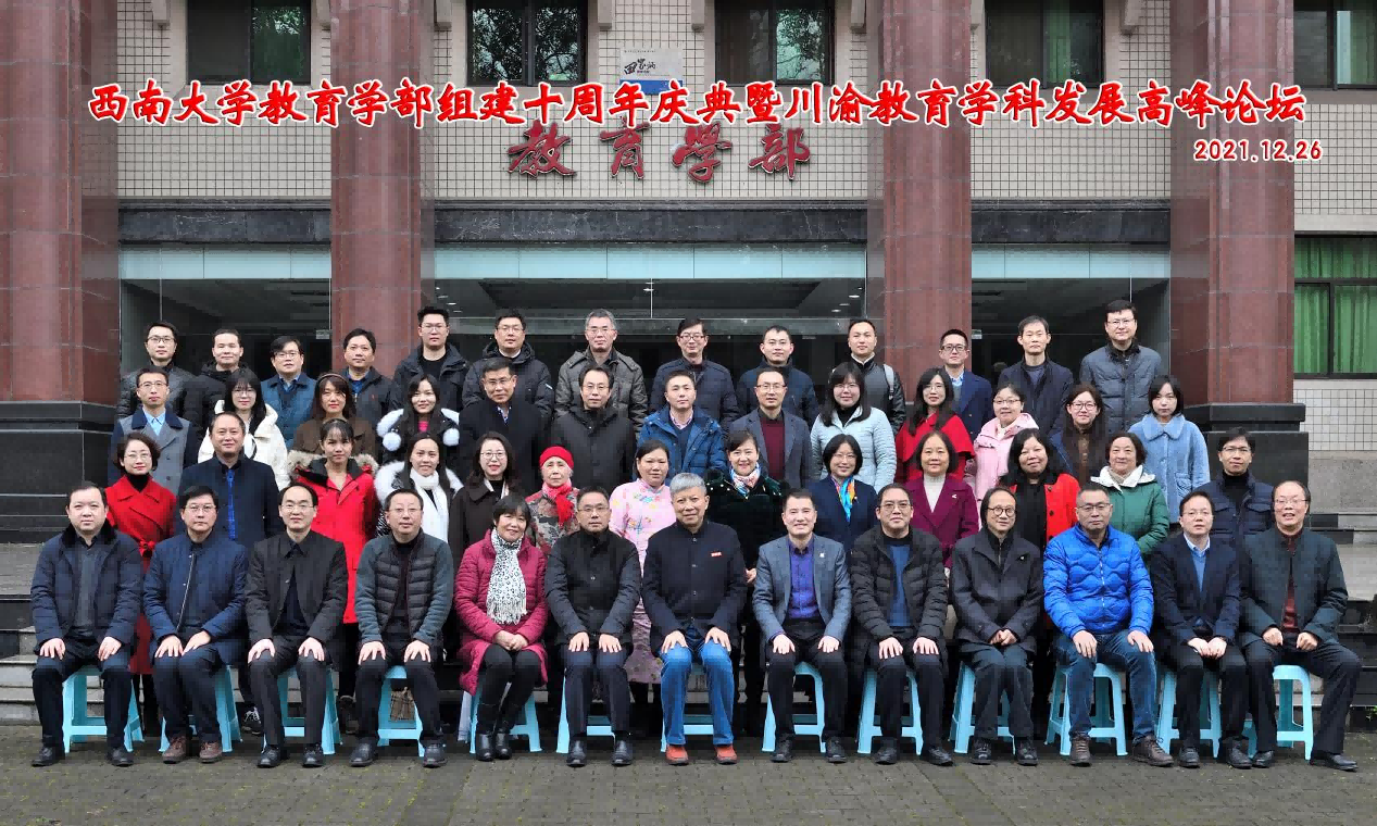 12月26日,教育学部组建十周年庆典暨川渝教育学科发展高峰论坛在田家炳教育书院811报告厅举行,学校副校长陈时见出席活动,教育部西南基础教育课程研究中心主任宋乃庆及300余位来自北京师范大学等高校的专家以及川渝地区的教育学科专家、教研机构专家、学术刊物专家云端受邀参会。成渝地区双城经济圈教育研究院在会上成立。