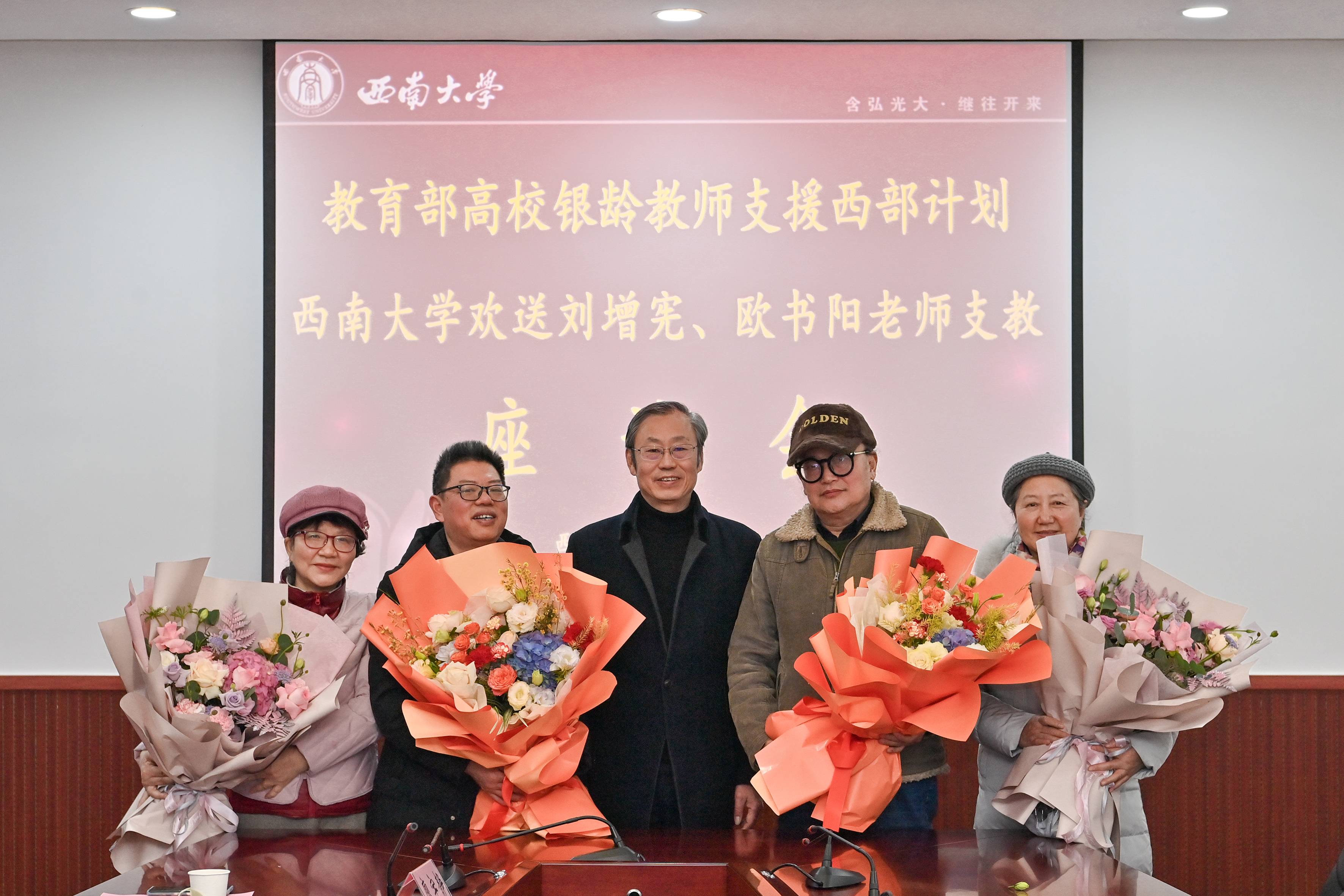 1月6日上午,学校举行欢送“高校银龄教师支援西部计划”援派教师座谈会,国家治理学院退休教师欧书阳、美术学院退休教师刘增宪即将前往对口援助的新疆塔里木大学和广西河池学院参与支教工作。学校党委副书记安春元出席会议并讲话。国家治理学院、美术学院、党政办公室、人力资源部、国内合作处、离退休工作处相关领导参加会议。