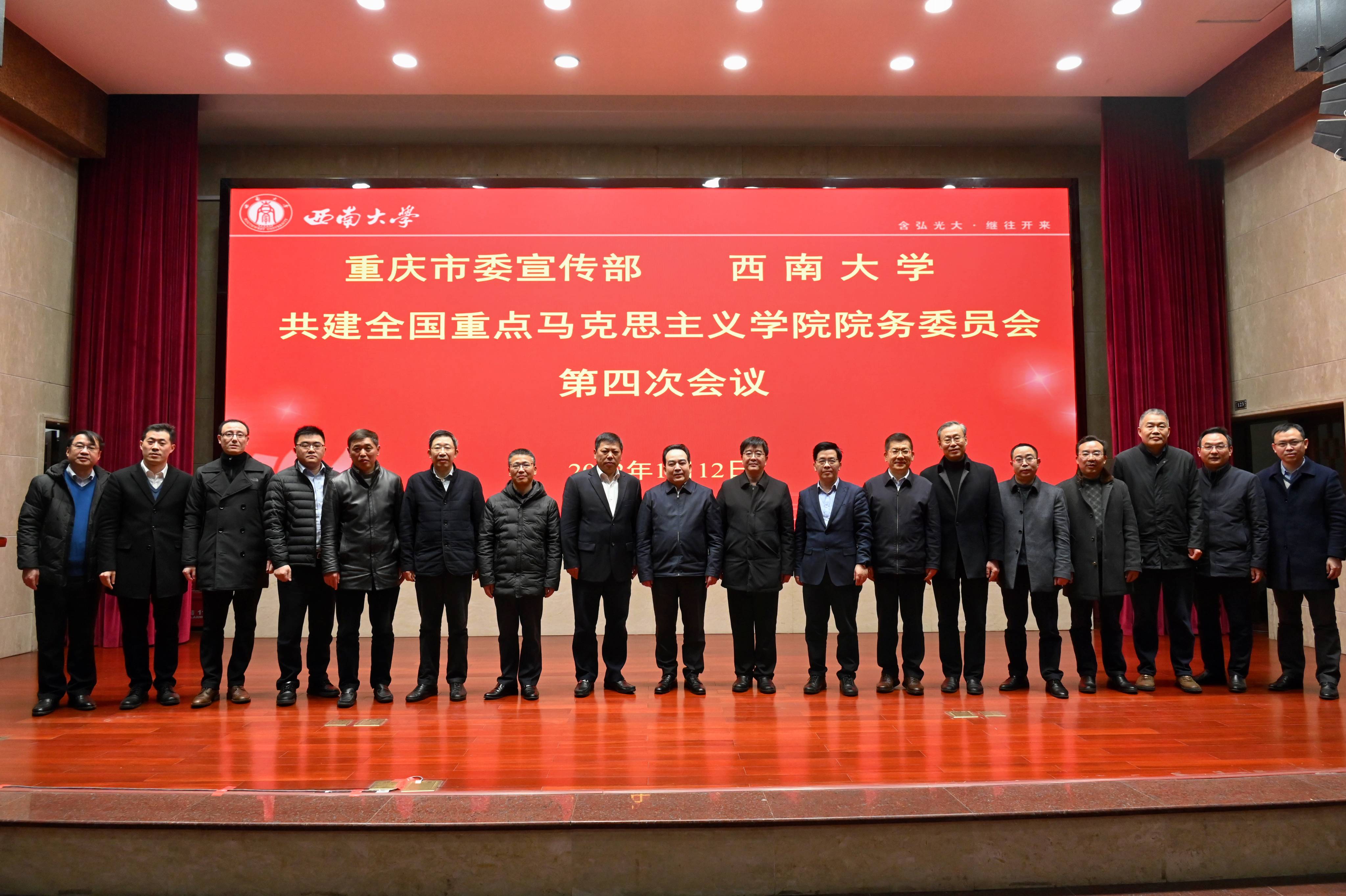 1月12日上午,重庆市委宣传部、taptap点点官方网站共建全国重点马克思主义学院院务委员会第四次会议在taptap点点官方网站召开。重庆市委常委、宣传部部长张鸣,重庆市委宣传部副部长、一级巡视员曾维伦,重庆社科院党组书记、院长刘嗣方,重庆社科联党组书记、副主席李保海,重庆市委教育工委专职副书记覃正杰,学校党委书记李旭锋、校长张卫国、党委副书记安春元、党委副书记潘洵出席会议。重庆市委宣传部理论处,重庆市委教育工委宣教处及taptap点点官方网站相关职能部门负责人、马克思主义学院党政负责人参加会议。会议由李旭锋主持。