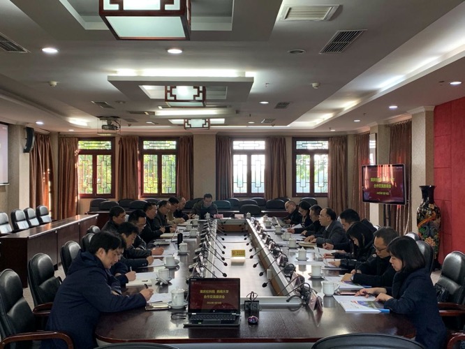 1月18日下午,重庆社科院副院长吴昌凡一行来校开展校院合作交流座谈。学校党委副书记潘洵,党委宣传部、社会科学处、研究生院、经济管理学院、国家治理学院、马克思主义学院、地理科学学院相关负责同志参加交流座谈会。