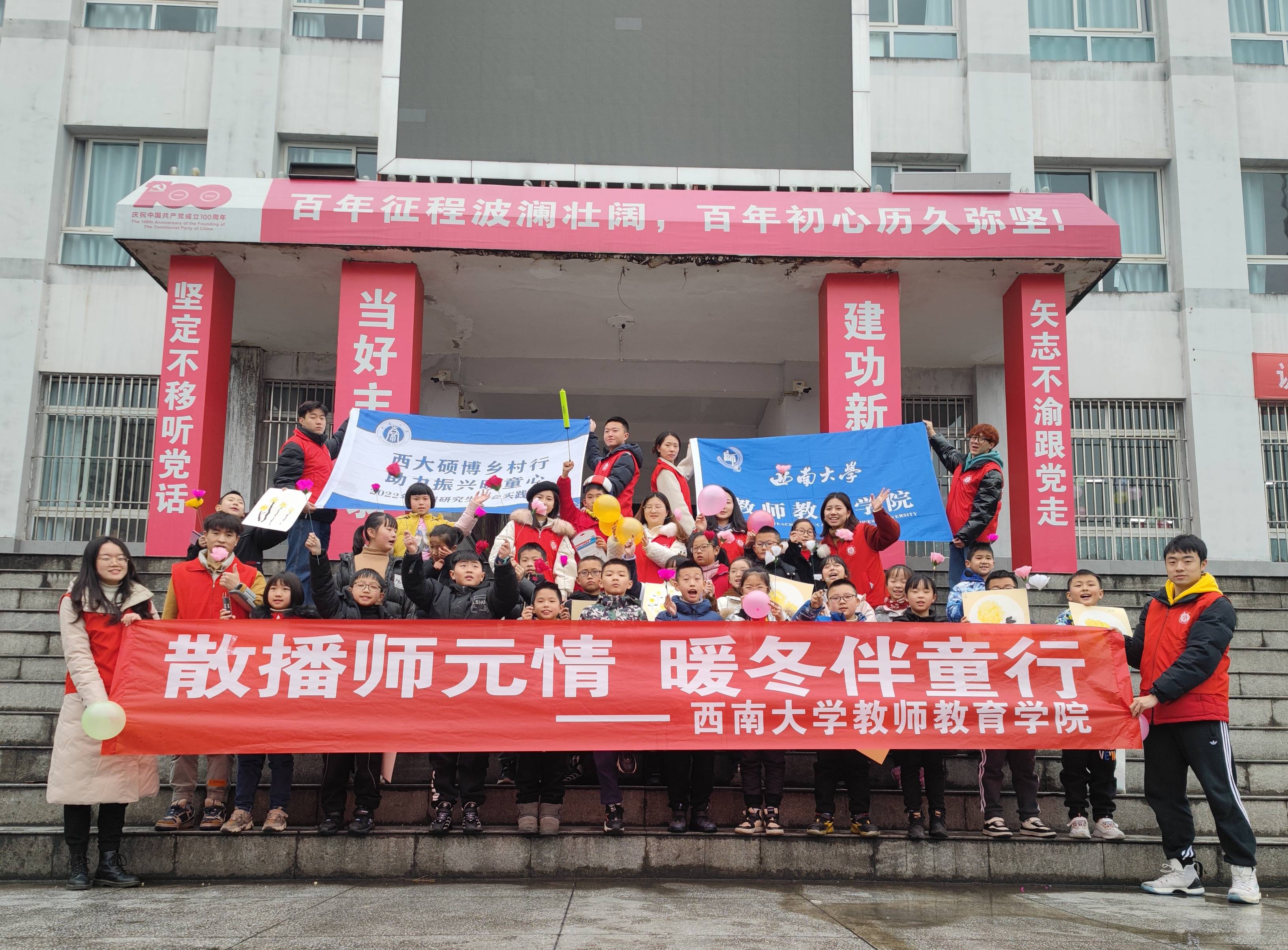 编者按:为充分发挥学校科技人才优势,引导研究生正确认识科学研究、理论成果与解决社会实际问题的关系,主动肩负起时代责任和历史使命,将个人研究服务于经济社会发展和广大人民群众,着力增强研究生实践能力、创新能力,全面助推乡村振兴战略,2022年寒假,党委研究生工作部继续组织开展“百所山村小学计划”研究生社会实践活动。本次活动的主题为“西大硕博乡村行,助力振兴暖童心”,共组建31支校级研究生实践团队奔赴重庆市内各区县开展送教下乡和留守儿童帮扶等形式多样、内涵丰富的社会实践活动,切实强化新时代研究生的使命担当,以丰硕的实践成果迎接党的二十大胜利召开。