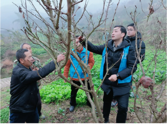 在金刀峡小华莹村,科技咨询志愿服务队的专家们现场为果树病虫害防治“精准把脉开良方”。他们先后来到柑桔园、樱桃园实地探查果树存在的问题,有针对性地提出柑桔园嫁接培优、增施有机肥,樱桃园用石硫合剂清园、树干涂白防治病虫,花椒树锈病提前预防控病等“药方”。