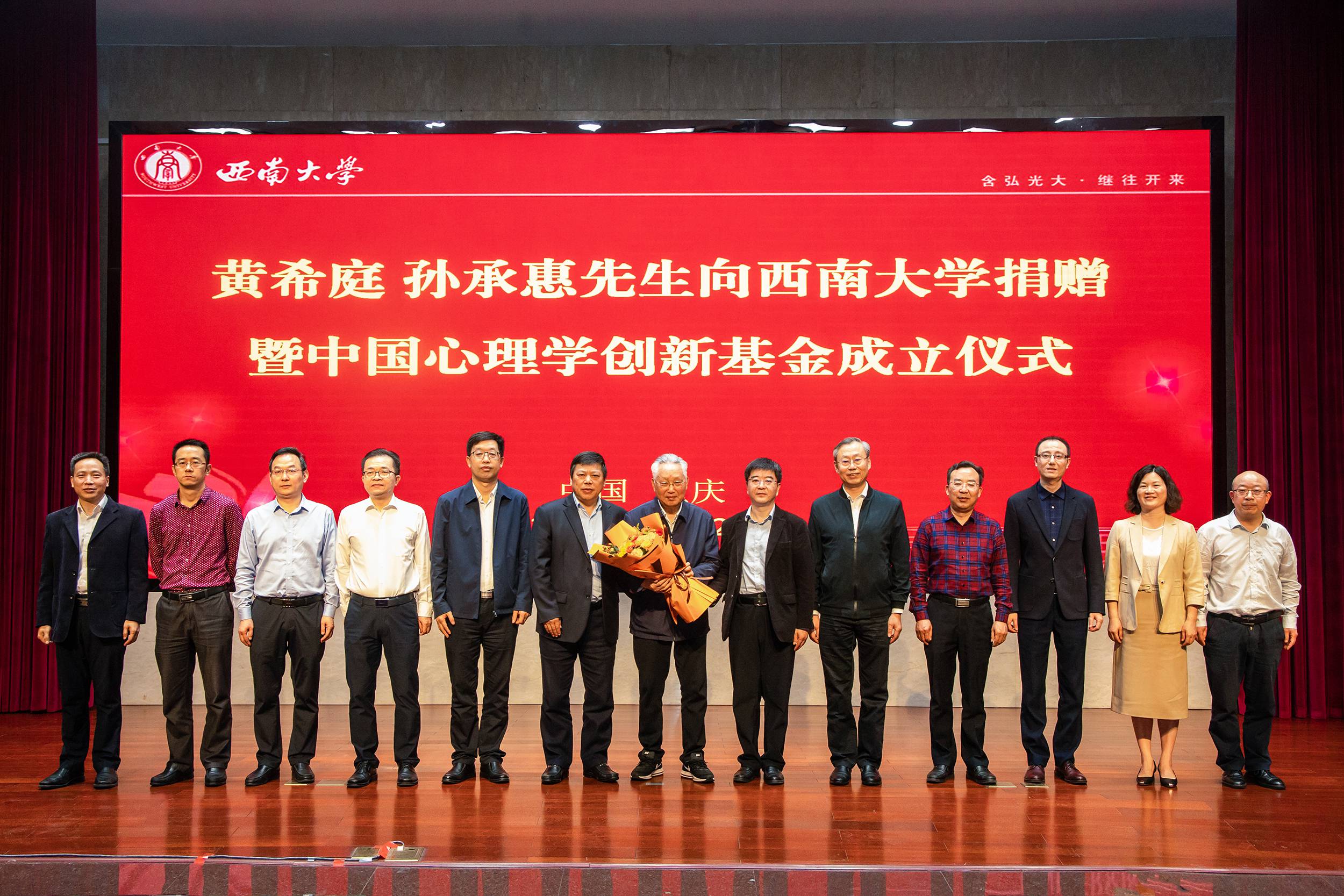 黄希庭教授是我国著名心理学家,从教60余年来,艰辛创业、坚毅有恒,为学校的心理学学科建设、为中国心理学事业的发展和人才培养作出重要贡献。为推动中国心理学创新发展,黄希庭慷慨解囊,将本人及其夫人孙承惠(已故)的一生积蓄300万元捐赠给学校,设立“中国心理学创新基金”,用于奖励在中国特色心理学理论创新、研究创新、应用创新、教学创新等方面做出突出贡献的心理学工作者。