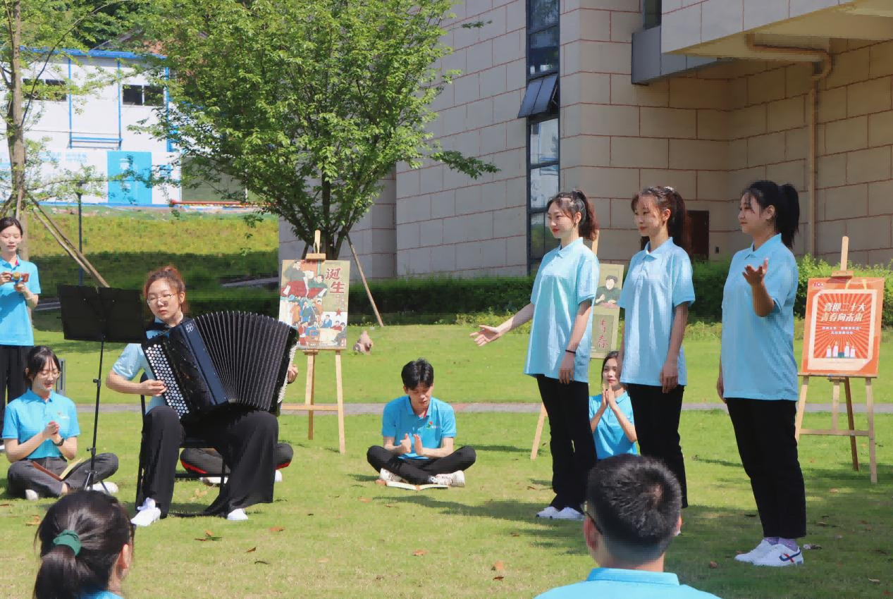 诗歌诵读分为觉醒、火种、家书、启航、开拓五个篇章。和煦的阳光下,大家通过诵读陈独秀《敬告青年》、鲁迅《自嘲》、胡适《希望》、江竹筠《江竹筠致谭竹安》、蓝蒂裕《耕荒》、端木蕻良《嘉陵江上》、《川东学生救国团宣言》、毛泽东《红军不怕远征难》与《卜算子·咏梅》等篇章,以激昂的青春抒发对革命英烈的敬仰怀念,对红色传统的追思与敬仰,对党和国家的无限热爱。