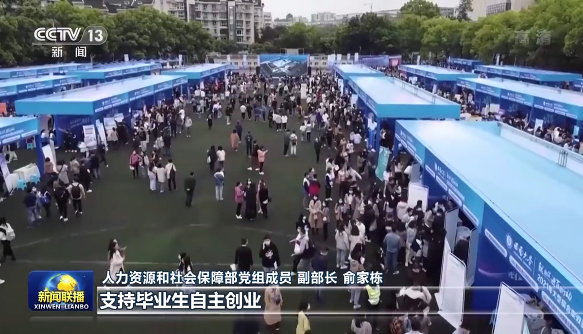 继3月29日央视《朝闻天下》专题报道学校就业工作和5月9日央视《新闻直播间》播出学校就业工作画面后,5月12日央视《新闻联播》对人力资源和社会保障部党组成员、副部长俞家栋的就业专访中再次选用学校就业工作相关视频素材。