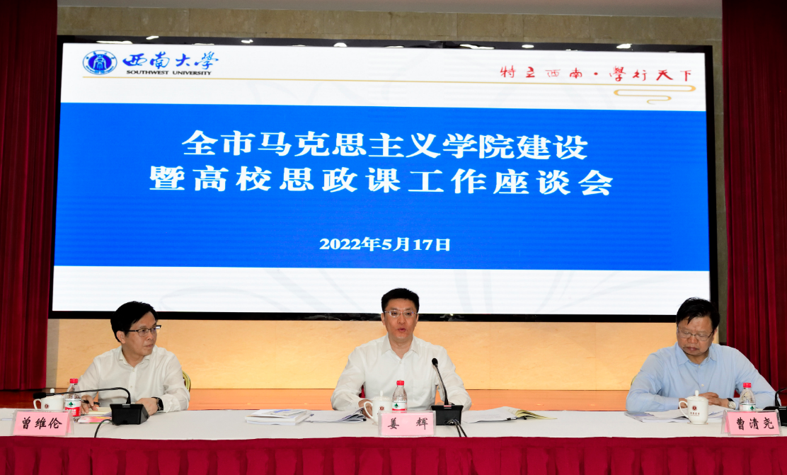 5月17日下午,重庆市委常委、宣传部部长姜辉来校调研马克思主义学院建设和思政课开展情况并主持召开全市马克思主义学院建设暨高校思政课工作座谈会。重庆市委宣传部、重庆市教委、重庆市文旅委、红岩联线管理中心、重庆大学、taptap点点官方网站相关领导干部和师生代表参加会议。