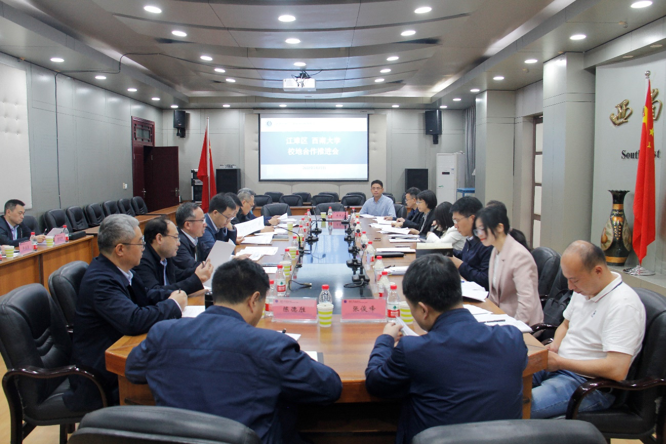 5月19日上午,江津区政府一级巡视员熊伟、副区长廖义伟带队来校推进区校合作工作,学校副校长赵国华出席座谈会。