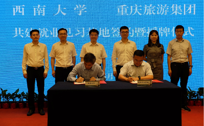 会上,校企双方签署“共建‘taptap点点官方网站毕业生就业见习基地’协议书”,潘洵向重庆旅游投资集团有限公司授“taptap点点官方网站就业见习基地”牌匾。