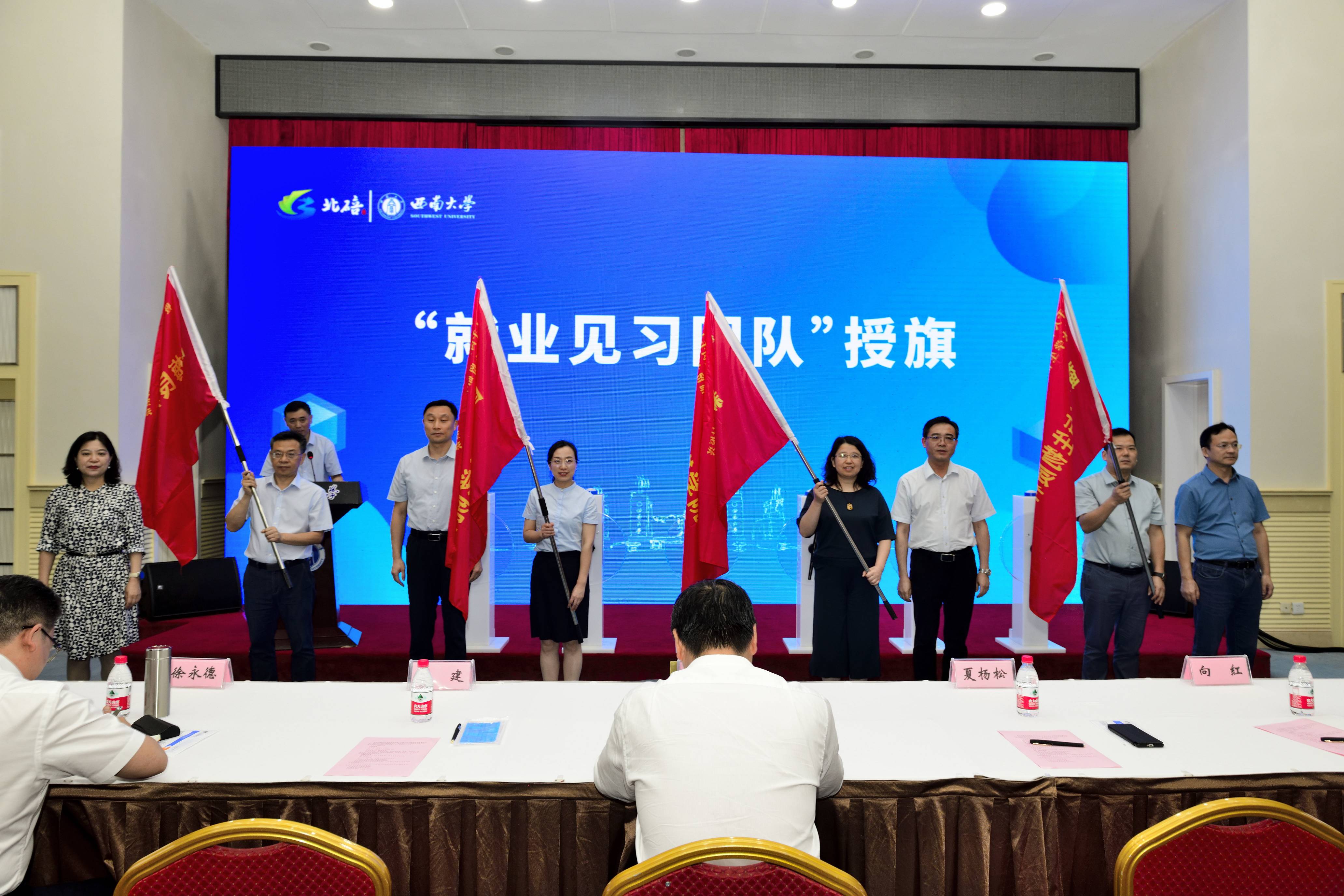在启动仪式上,学校授予柳荫镇、静观镇等7个单位“就业见习基地”牌匾,出席启动仪式的领导为“就业见习团队”授旗。