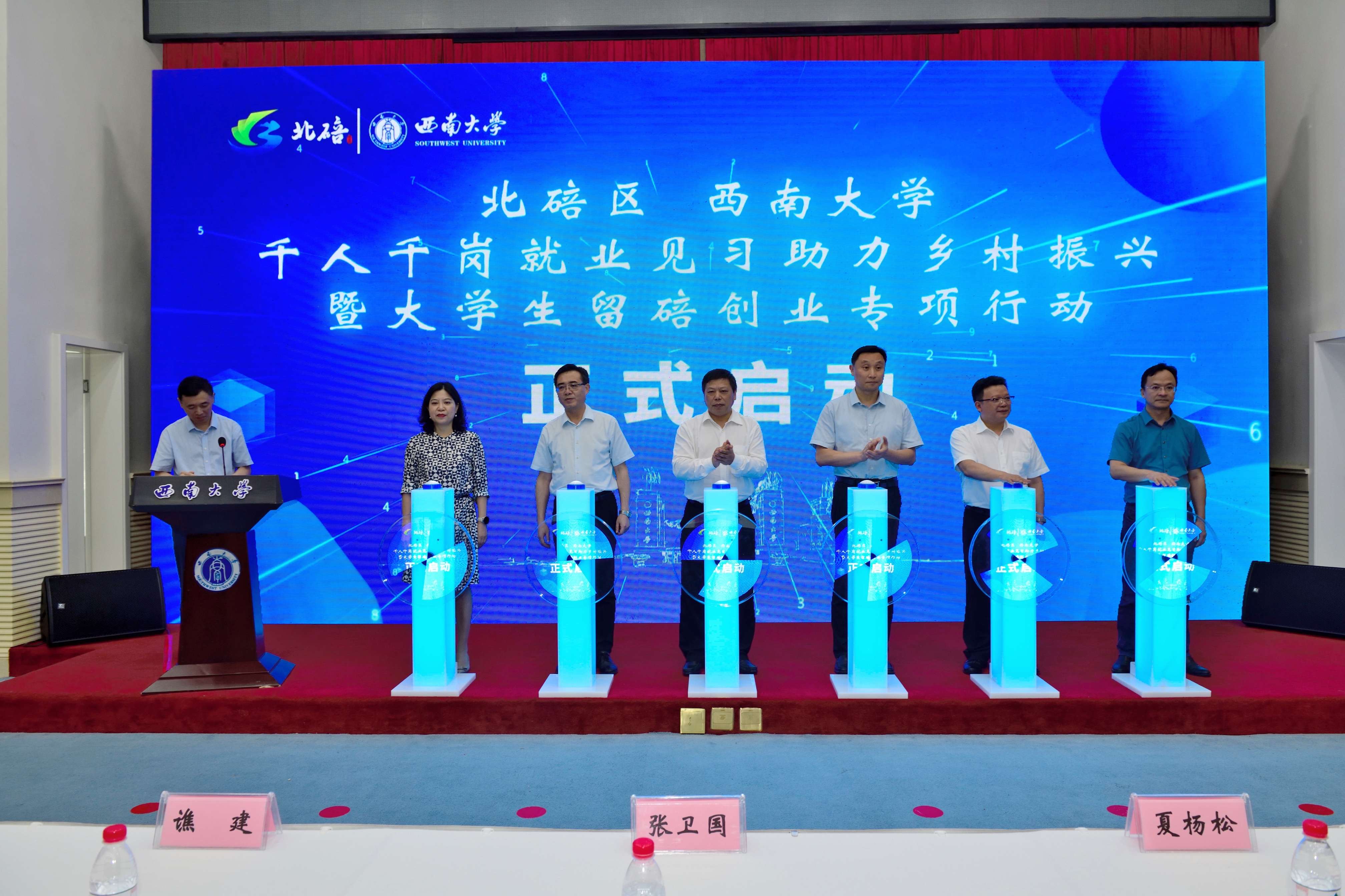 6月17日,学校和北碚区人民政府联合举行“千人千岗助力乡村振兴暨大学生留碚创业专项行动”启动仪式。重庆市教委二级巡视员谯建,市人社局副局长夏杨松,市乡村振兴局人力资源开发处处长孙元忠,北碚区委副书记徐永德、副区长向红,学校校长张卫国、党委副书记潘洵等出席启动仪式,就业见习单位代表负责人、就业见习指导教师代表、就业见习学生代表等参加。