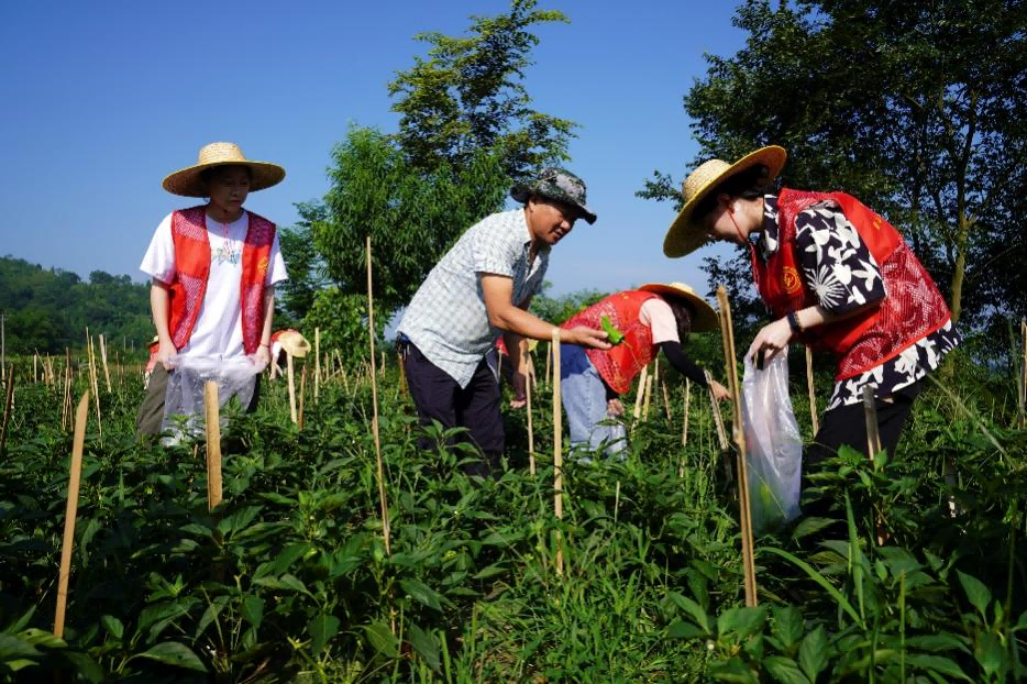 7月5日上午,历史文化学院民族学院暑期“三下乡”社会实践服务团来到北碚区天府镇中心村,开展为期5天的劳动助农志愿服务。早上8点,志愿者们到达天府镇中心村祠堂农场,在村干部的指导下,开始采摘青椒。