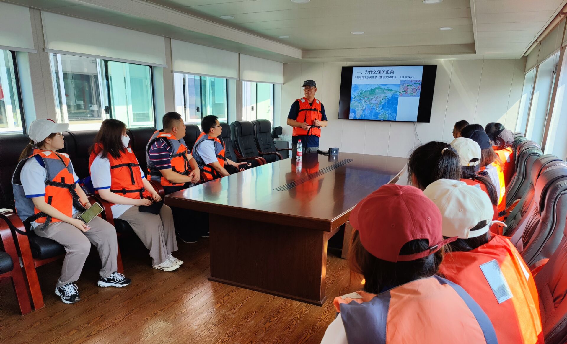 薪火相传,护佑大江鱼影宣教课。实践团一行来到江津区林业局长江上游珍稀特有鱼类国家级自然保护区重庆段宣教中心。重庆市珍稀特有鱼类国家级自然保护区管理处处长王维及干部段聪为水产学院师生上了一堂别开生面的宣教课。实践团以座谈会的形式与保护区管理处领导深入交流,切实加深了同学们对长江保护与珍稀特有鱼类保护重要意义的理解。