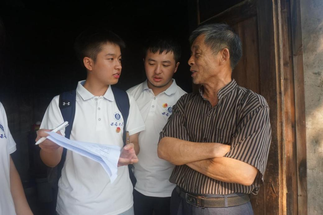 在江津区珞璜镇合解村,实践团通过走访调研的形式,深入调研当地村民对党史故事的知晓度。成员们组成宣讲小组,为当地村民讲解党史故事,用实际行动促进当地村民对党史的了解与认同。