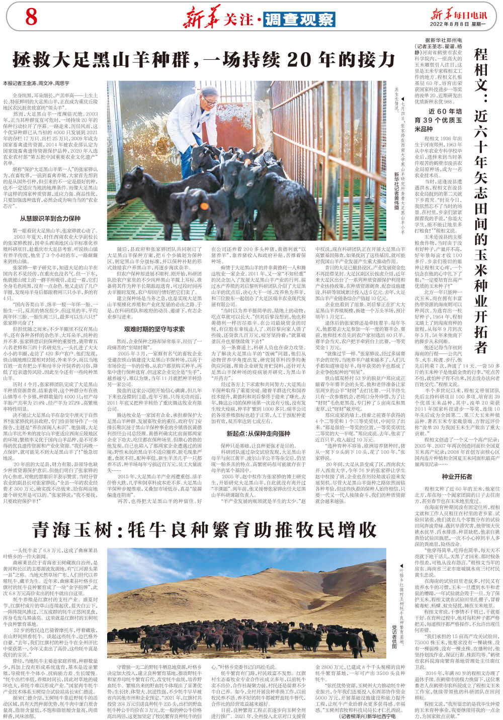 8月8日,新华社《新华每日电讯》以“拯救大足黑山羊种群,一场持续20年的接力”为题,向大家展现了这场长达二十年之久的种质资源保护战。报道内容如下: