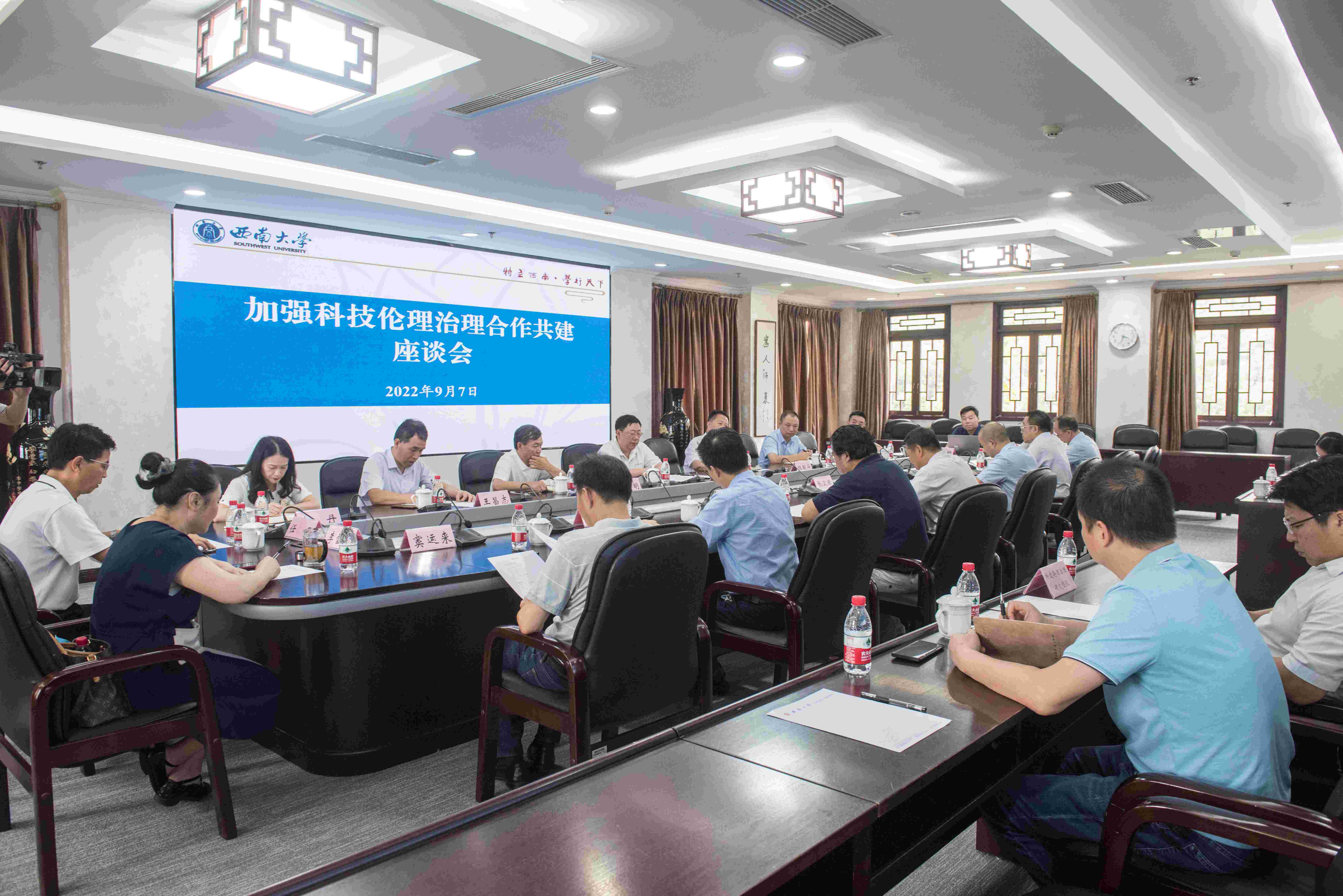 9月7日下午,重庆市科学技术协会党组书记、常务副主席王合清,党组成员、副主席颜朝华,一级巡视员陈昌明等一行人来校调研并出席加强科技伦理治理合作共建座谈会。学校校长张卫国,副校长崔延强出席座谈会,学校党政办公室、科学技术处、科协、档案馆、国家治理学院负责人和团队负责人参会。会议由崔延强主持。