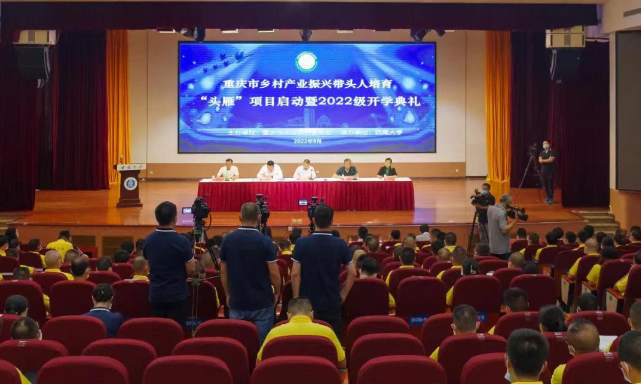 9月15日上午,重庆市乡村产业振兴带头人培育“头雁”项目启动暨2022级开学典礼在学校音乐演奏厅举行。重庆市委农业农村工委委员、重庆市农业农村委副主任莫杰,学校党委副书记安春元出席启动仪式,重庆市财政局、农业农村委、农业广播电视学校有关领导及学校党政办公室、国内合作处、培训与基础教育管理处、继续教育学院等单位领导和相关专家参加会议。