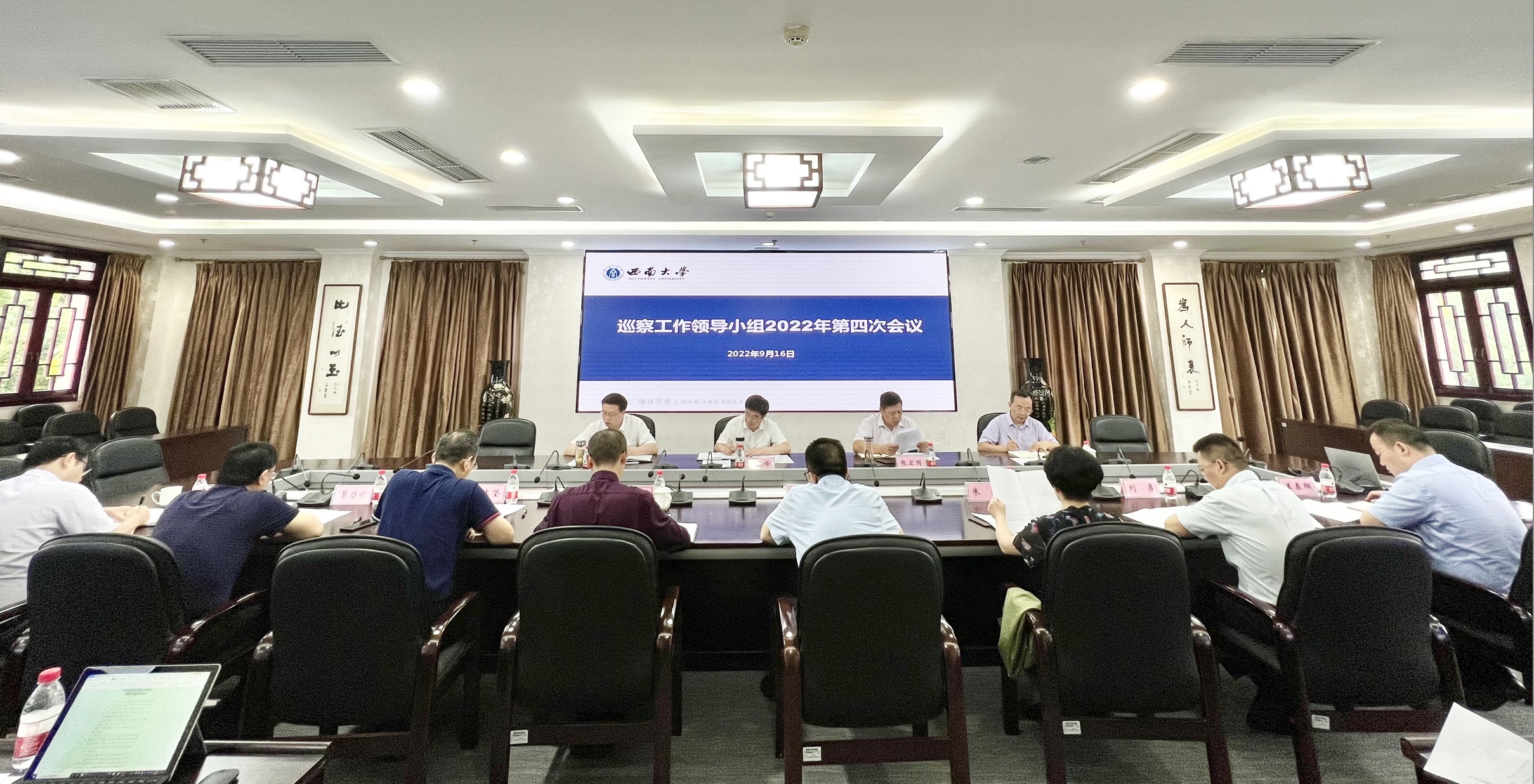 9月16日上午,学校召开巡察工作领导小组2022年第四次会议,研究部署第九轮校内巡察工作。学校党委书记、巡察工作领导小组组长李旭锋主持会议,校长、巡察工作领导小组组长张卫国,党委副书记、纪委书记、巡察工作领导小组副组长夏玉峰出席会议,巡察工作领导小组全体成员单位主要负责同志参加会议。