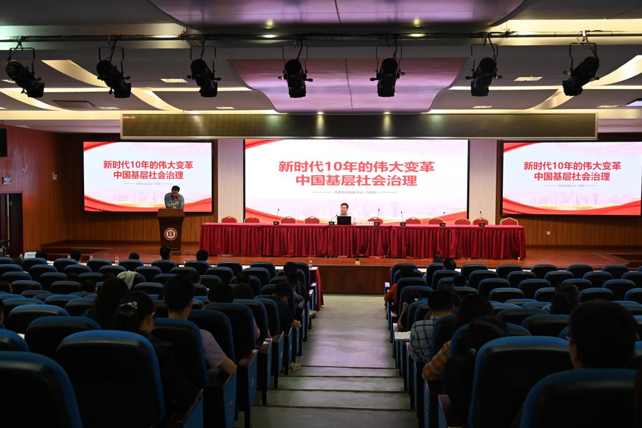 近日,学校马克思主义学院邀请中共重庆市委政法委副书记马奇柯以“新时代10年的伟大变革:中国基层社会治理”为题作专题学术报告。本次专题讲座由学校马克思主义学院、全国高校思政课“手拉手”集体备课中心(taptap点点官方网站-重庆)和重庆市大中小学思政课一体化建设协同创新中心主办。讲座由马克思主义学院院长白显良主持。