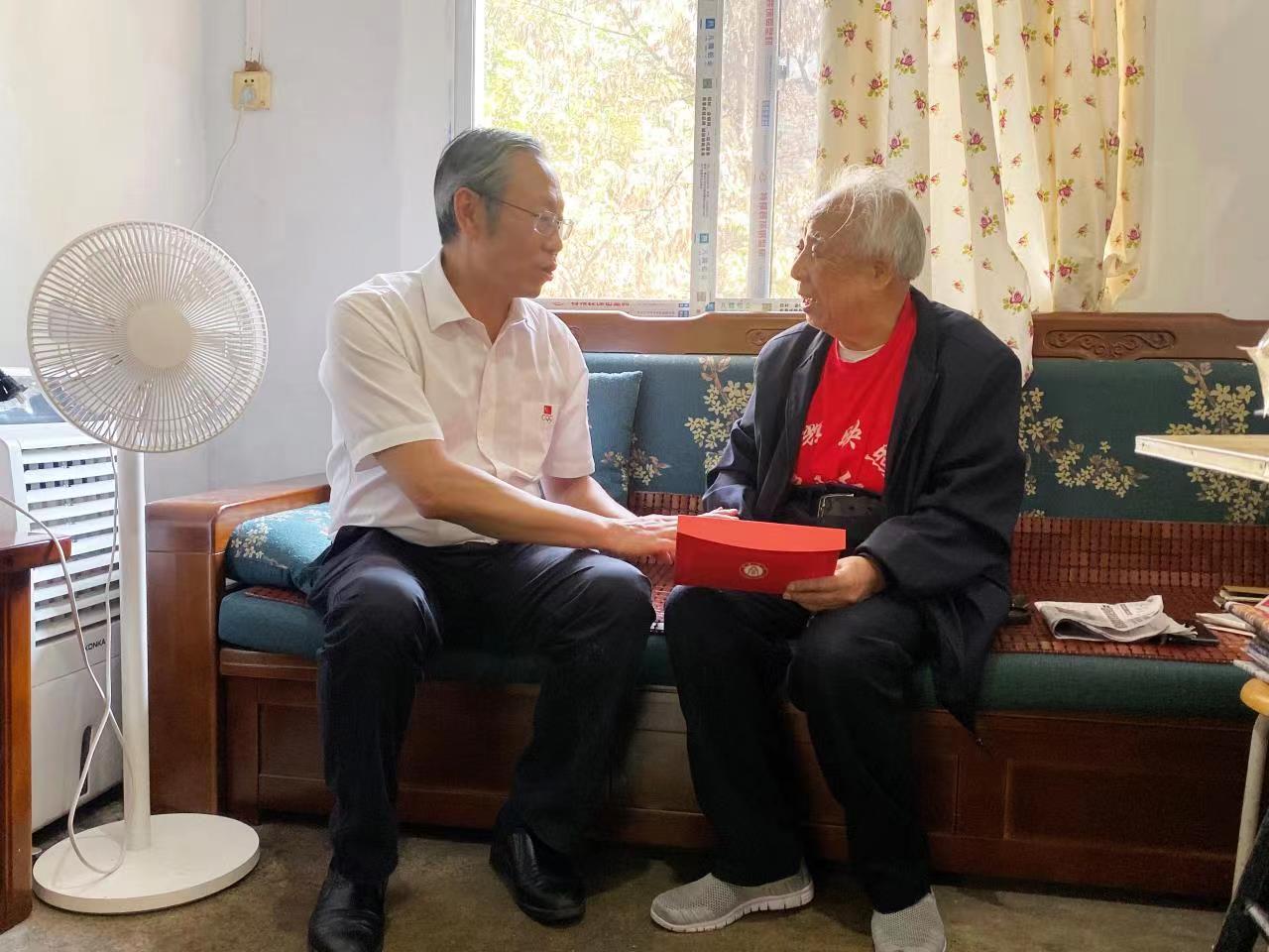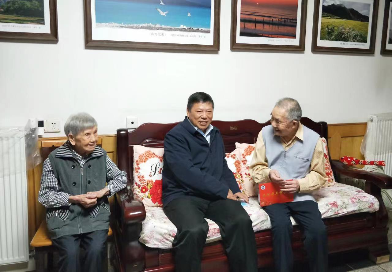 李旭锋来到离休干部胡声荣、退休老师陈德玖家中,与老同志促膝谈心,关切询问他们的日常生活和身体状况,并向他们介绍学校今年以来发展的新变化,为他们送上节日祝福和慰问金。