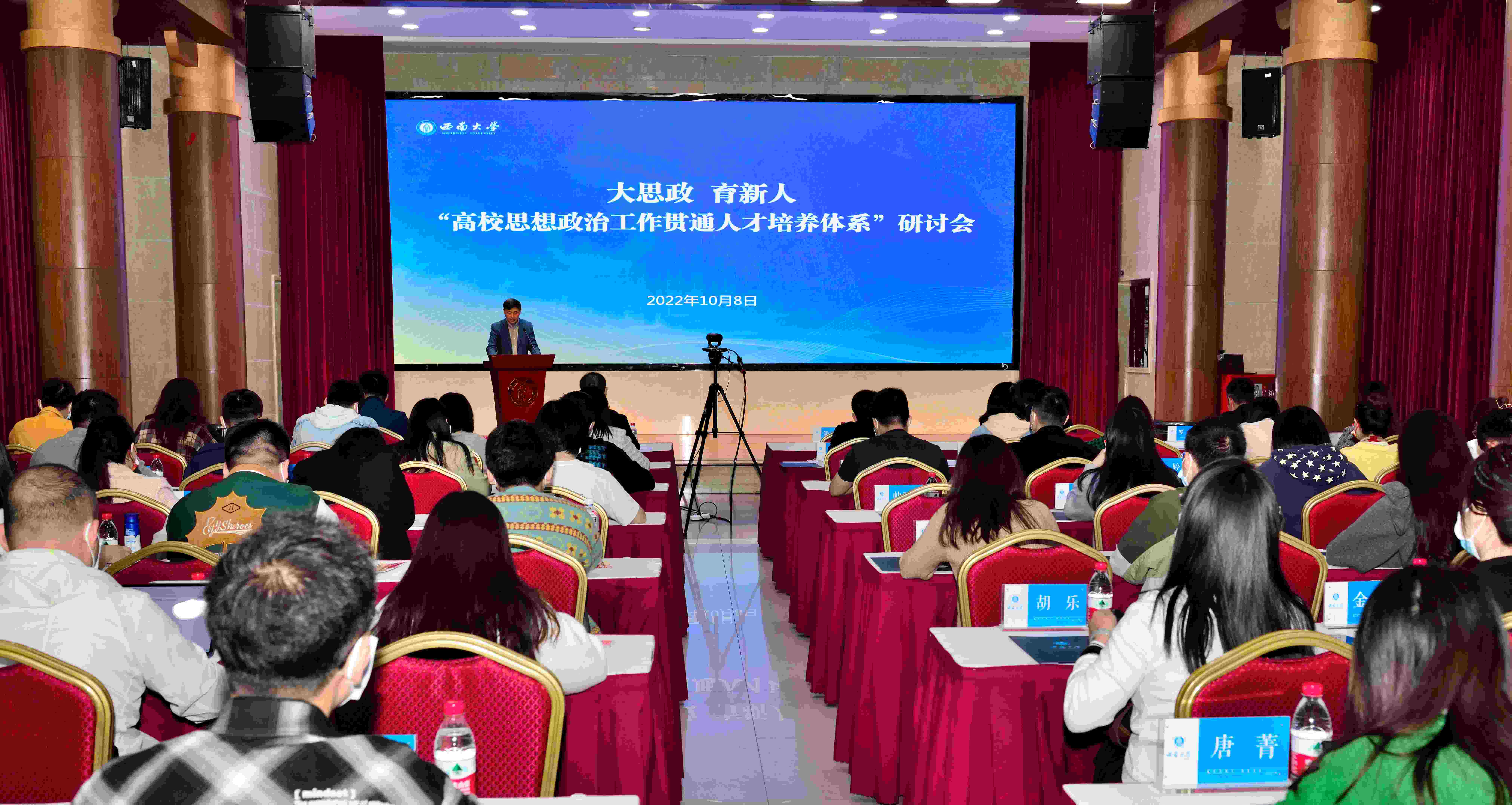 10月8日,“大思政 育新人:高校思想政治工作贯通人才培养体系”研讨会在学校顺利举行。研讨会以线上线下相结合的形式举行,分开幕式、主旨报告和两个主题论坛。