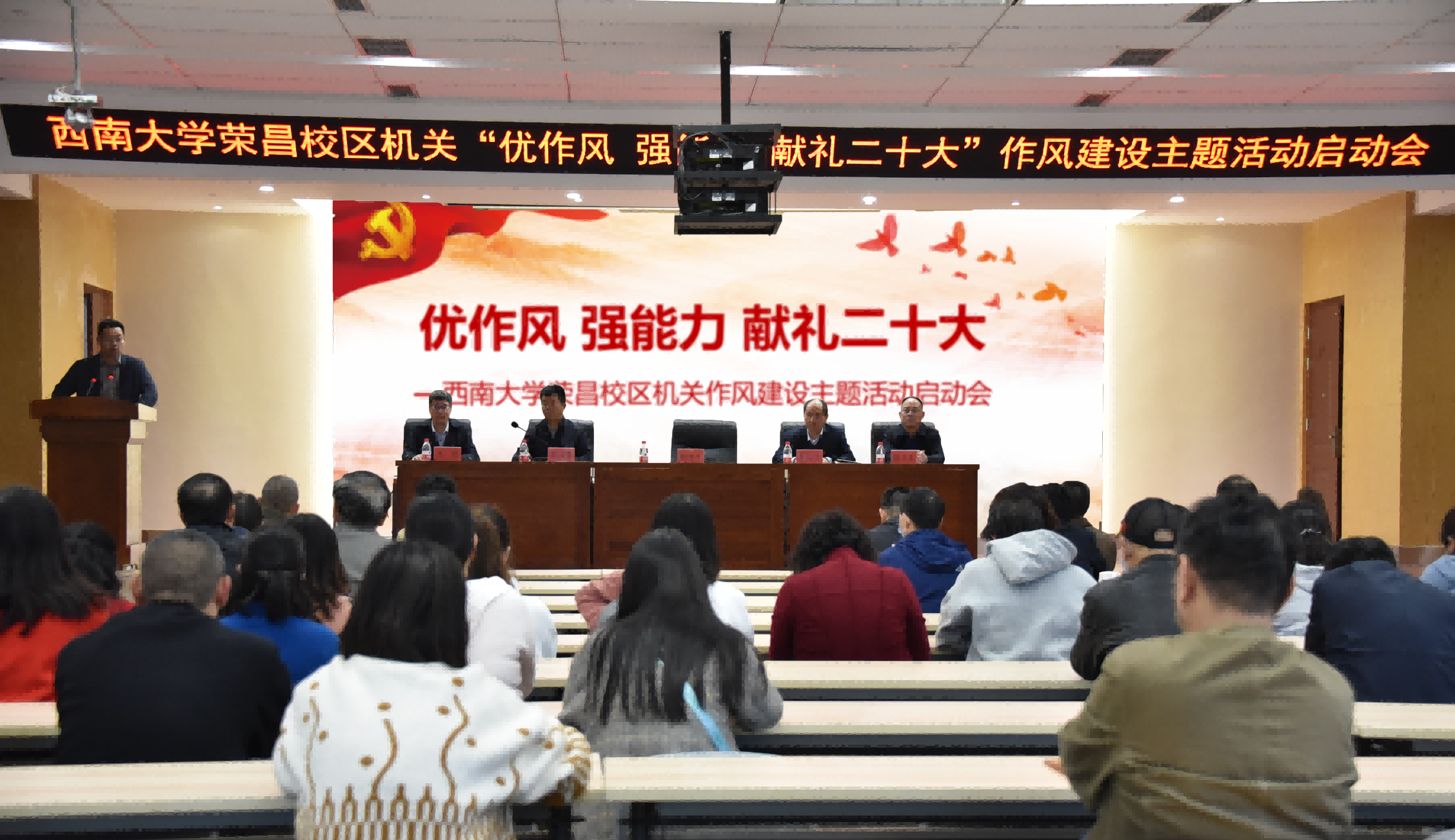 赵国华代表学校向活动的启动表示祝贺。赵国华表示,荣昌校区当前正处于“提质扩容”的发展新阶段,新阶段事业发展对校区机关工作提出了更高要求,开展机关作风建设主题活动具有重要意义。赵国华在启动会上对荣昌校区机关全体干部职工提出要求:一要提高站位,主动担当;二要直面问题,敢于斗争;三要练好内功,强化能力;四要追求实效,形成长效。并要求切实加强活动环节监督检查力度,确保活动扎实有效,为实现荣昌校区高效运转提供强有力的制度和作风保障,确保活动取得圆满成功。