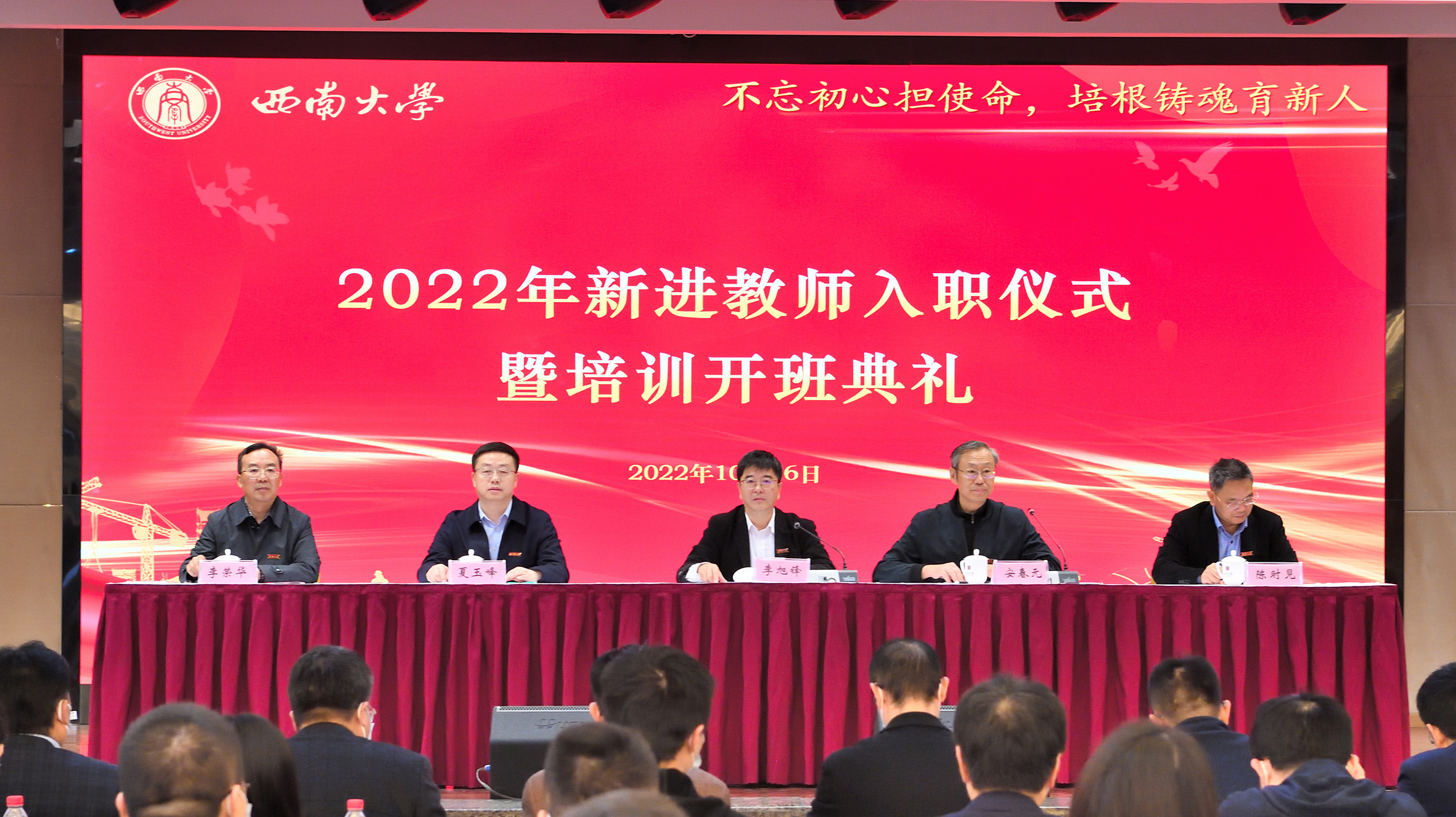 10月26日,学校在国际学院学术报告厅举行2022年新进教师入职仪式暨培训开班典礼。学校党委书记李旭锋出席会议并致辞,党委副书记安春元,党委副书记、纪委书记夏玉峰,副校长陈时见,教师工作委员会成员单位负责人,教师代表,2022年新进教师和2021年未参加入职培训教师共230人参加会议。会议由安春元主持。