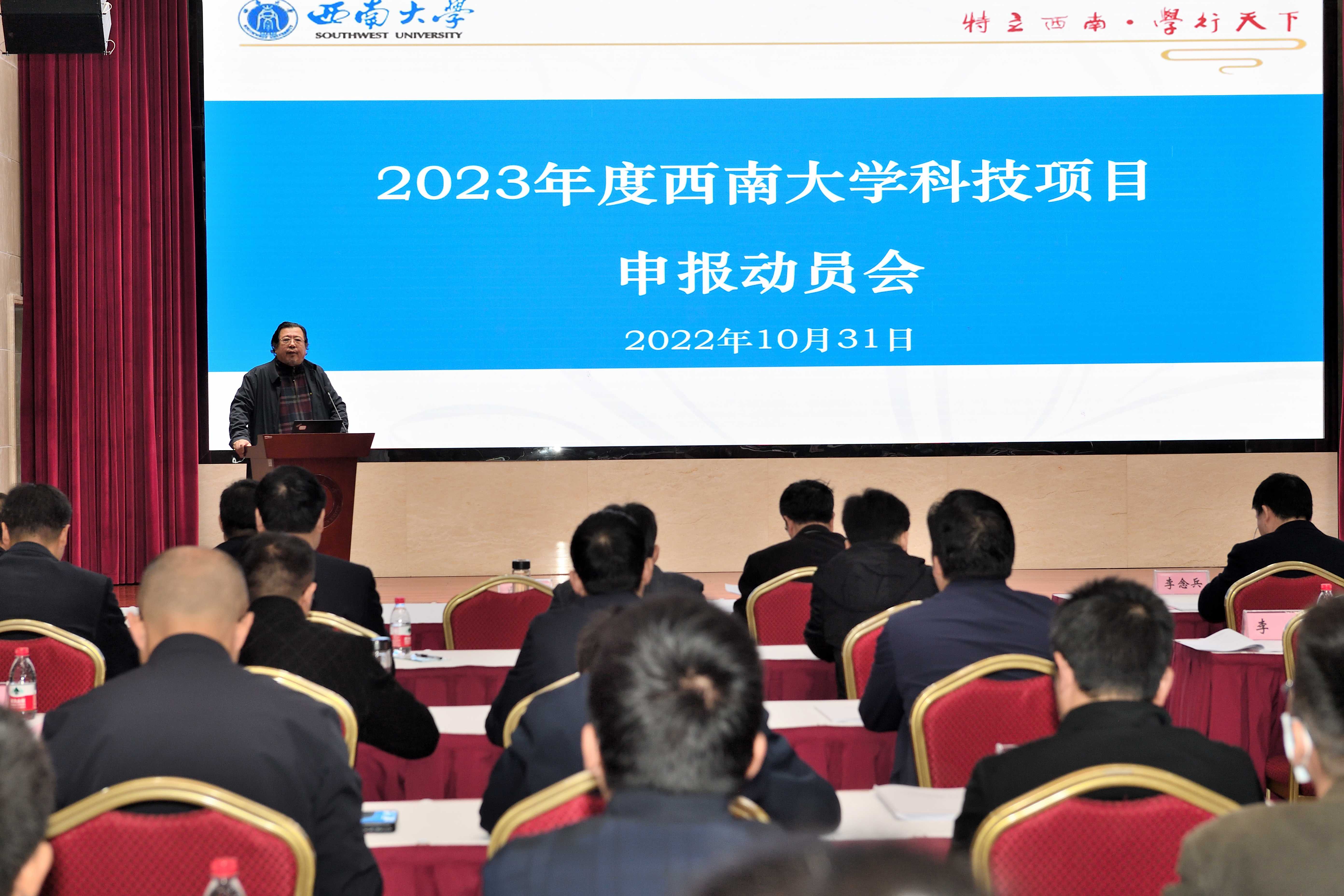 10月31日上午,学校在东方红会议厅召开2023年度taptap点点官方网站科技项目申报动员大会。重庆市科学技术局副局长许志鹏,学校党委书记李旭锋,副校长崔延强出席会议,学校二级教学科研单位主要负责人、分管领导,校管独立科研机构负责人,自然科学类各科研基地负责人,科学技术处相关人员参加会议。