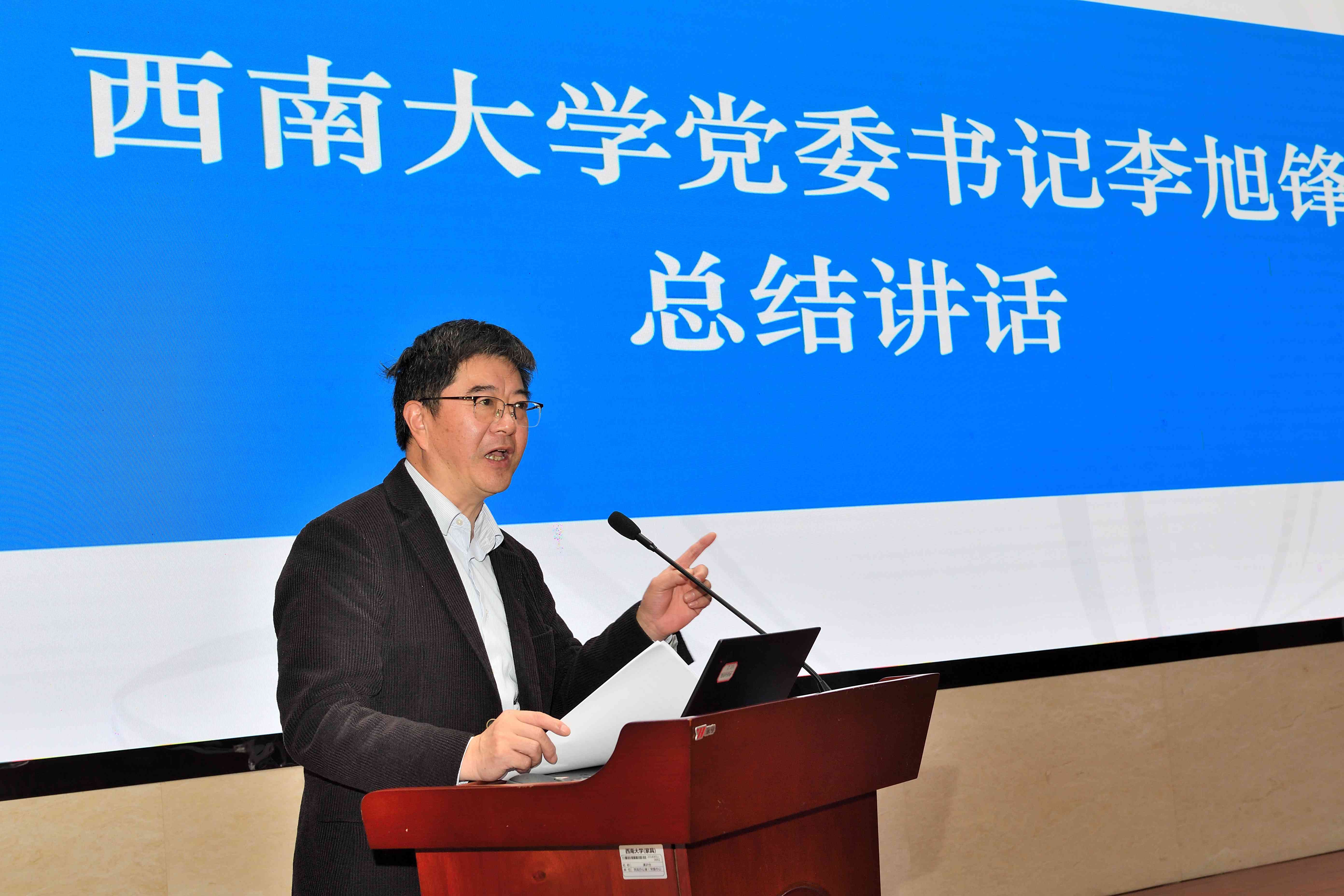 李旭锋在讲话中提出要求,要提高站位找准目标,学校的发展要与国家、重庆市的经济战略、科技进步结合起来;要坚持问题导向效果导向,主动梳理问题,学校“十四五”规划任务要分解到位,狠抓落实;要正确认识自由探索与有组织科研之间的关系,坚持“四个面向”加强科研交流合作;要大力弘扬科学家精神,践行科研诚信要求。李旭锋强调,学校科研实力的发展根本是人才,要引进来或者送出去,提升人才竞争实力,从而全面提升承担国家重大科研任务的能力。