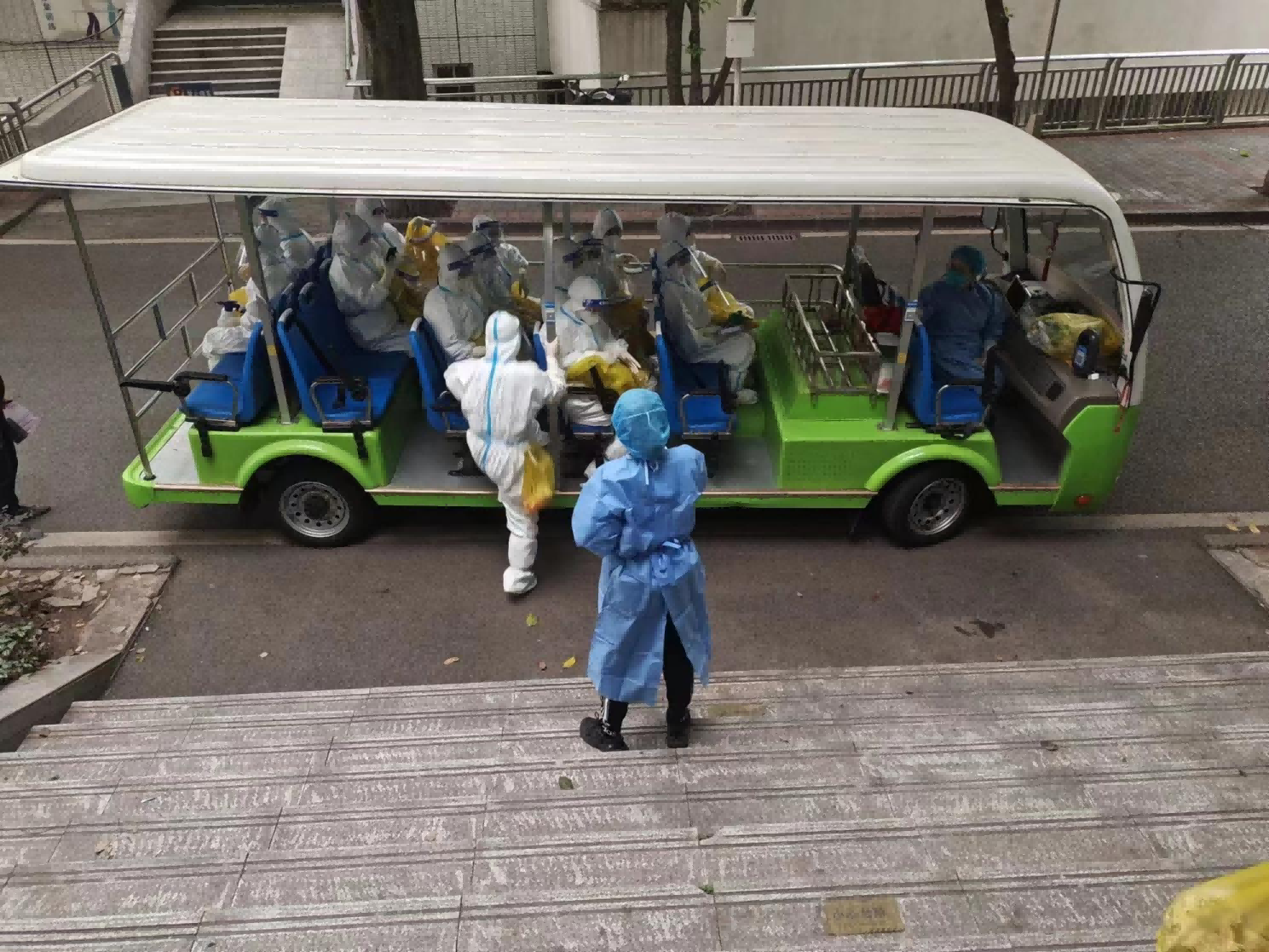 校园观光车是学校主要的交通工具,其团队隶属于重庆品源观光旅游有限公司,这支由于疫情封控只有3人在岗的“队伍”,力微任重,毅然接下学校的信任,担起接送校医院防疫人员、转运密接人群以及运送防疫物资的任务。