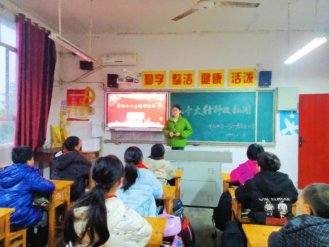 此外,在各地中小学陆续开学之际,一些小分队则将宣讲现场搬进了教室,为当地中小学生们带来了“开学第一课”。宣讲队成员、学院英语(师范)专业师范生付钰纹走进重庆市合川区十塘完全小学的六年级课堂,第一次以一名“教师”身份站上了讲台。她通过简单易懂的语言、生动形象的图像,借助互动问答、小组游戏等方式和同学们共同学习了党的二十大有关知识,同时援引党的二十大报告中有关教育、青年等主题的论述,鼓励同学们锤炼品行,努力学习,增强才干。对于付钰纹而言,此次宣讲最大的收获在于进一步认识到思想引领在教育过程中的重要作用,也让作为师范生的她深感责任重大、使命光荣。