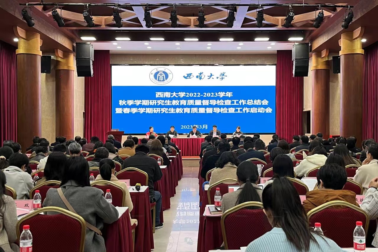 为贯彻全国研究生教育会议精神,落实学校研究生教育高质量发展行动计划,3月23日下午,学校在东方红会议厅组织召开2022-2023学年秋季学期研究生教育质量督导检查工作总结会暨春季学期研究生教育质量督导检查工作启动会。副校长王进军出席会议并讲话。