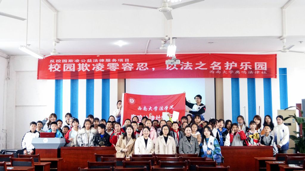 自2006年成立以来,法学院的师生们一直致力于青少年法治教育公益法律服务,并于2020年组建乐园守护者团队,专项运营反校园欺凌公益法律服务项目,创作《校园欺凌案例汇编》、反校园欺凌小课堂教案等,先后前往多所中小学开展反校园欺凌公益法律服务。项目计划与检察院、法院、律师协会等法律实务部门,以及地方教育部门、中小学校进一步寻求合作,立志为创建无欺凌校园贡献力量,护航青少年平安健康成长。