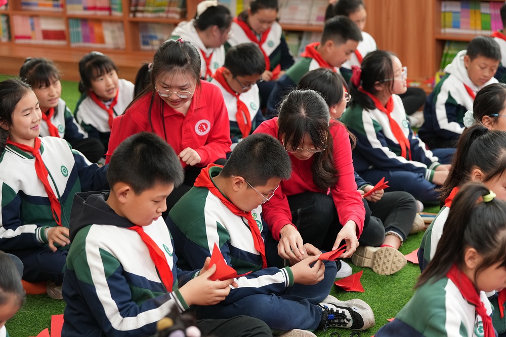 在附小,大学生与小学生一起,共同学习宣讲党的二十大精神。互动游戏让小学生在了解党的创新理论的同时又寓学于乐、亲身参与,宣讲效果得到提升。宣讲员以同学们所熟悉的课文《美丽的小兴安岭》导入并设置趣味互动,在简笔画游戏和知识竞答过程中带领同学们回望塞罕坝的建设历史,瞻仰塞罕坝的精神丰碑。除此之外,宣讲员们通过剪纸小游戏让同学们亲身体验传统文化魅力,通过“你画我猜”小游戏以直观的方式加深了同学们对科教兴国理念的理解。