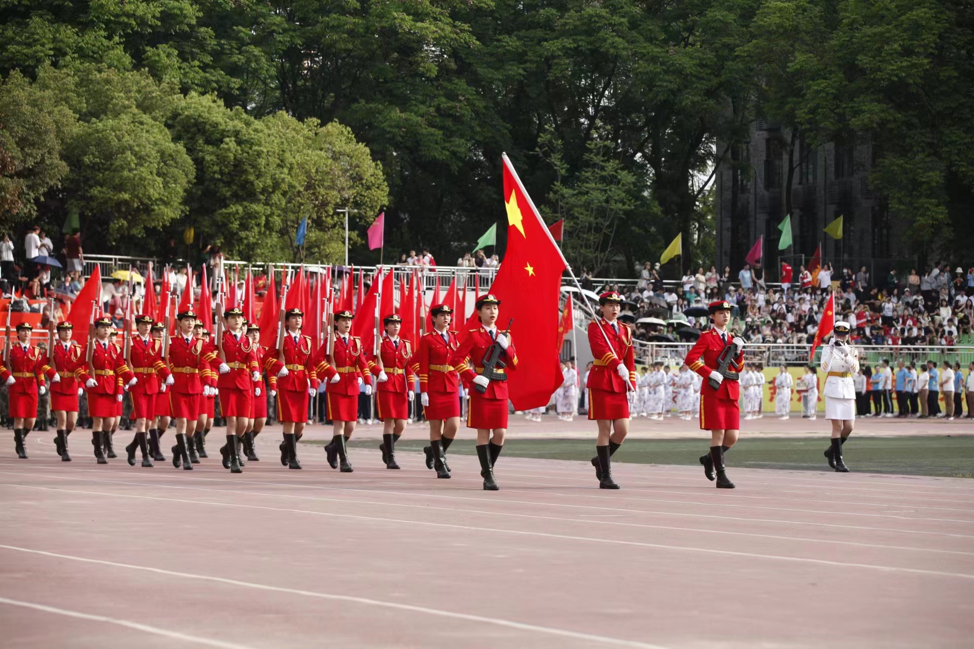 伴随着慷慨激昂的《运动员进行曲》,迈着铿锵的步伐,在国旗队的引领下,校旗队、校徽队、砺剑班、红旗队、鲜花队、教职工代表队、研究生代表队,以及40个运动员方队依次入场。砺剑班心系国防、服务社会,红旗方队斗志昂扬、英姿飒爽,鲜花方队手执花扇、风姿绰约……40个运动员方队步调铿锵、各具特色,全面展示了西大师生的风采。