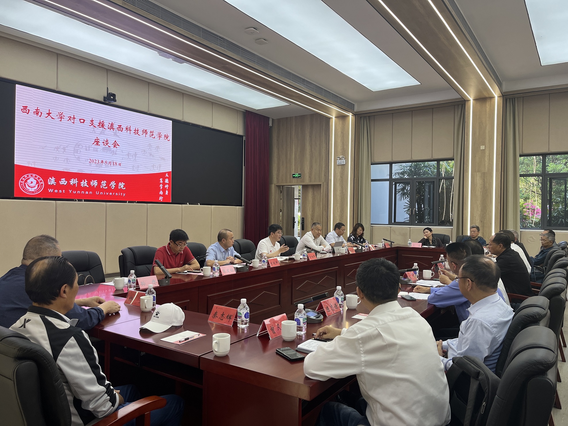 5月18日,李旭锋一行在滇西科技师范学院召开对口支援工作座谈会。会上,“银龄教师”代表李名扬介绍了taptap点点官方网站“银龄计划”专家团在滇西科技师范学院开展人才培养、学科建设、课题研究、社会服务等方面工作成效。李旭锋为学校聘任的滇西科技师范学院兼职专业硕士导师和博士导师颁发聘书,葛信勇与滇西科技师范学院党委副书记施勇共同为“taptap点点官方网站——滇西科技师范学院专业学位研究生联合培养基地”揭牌。