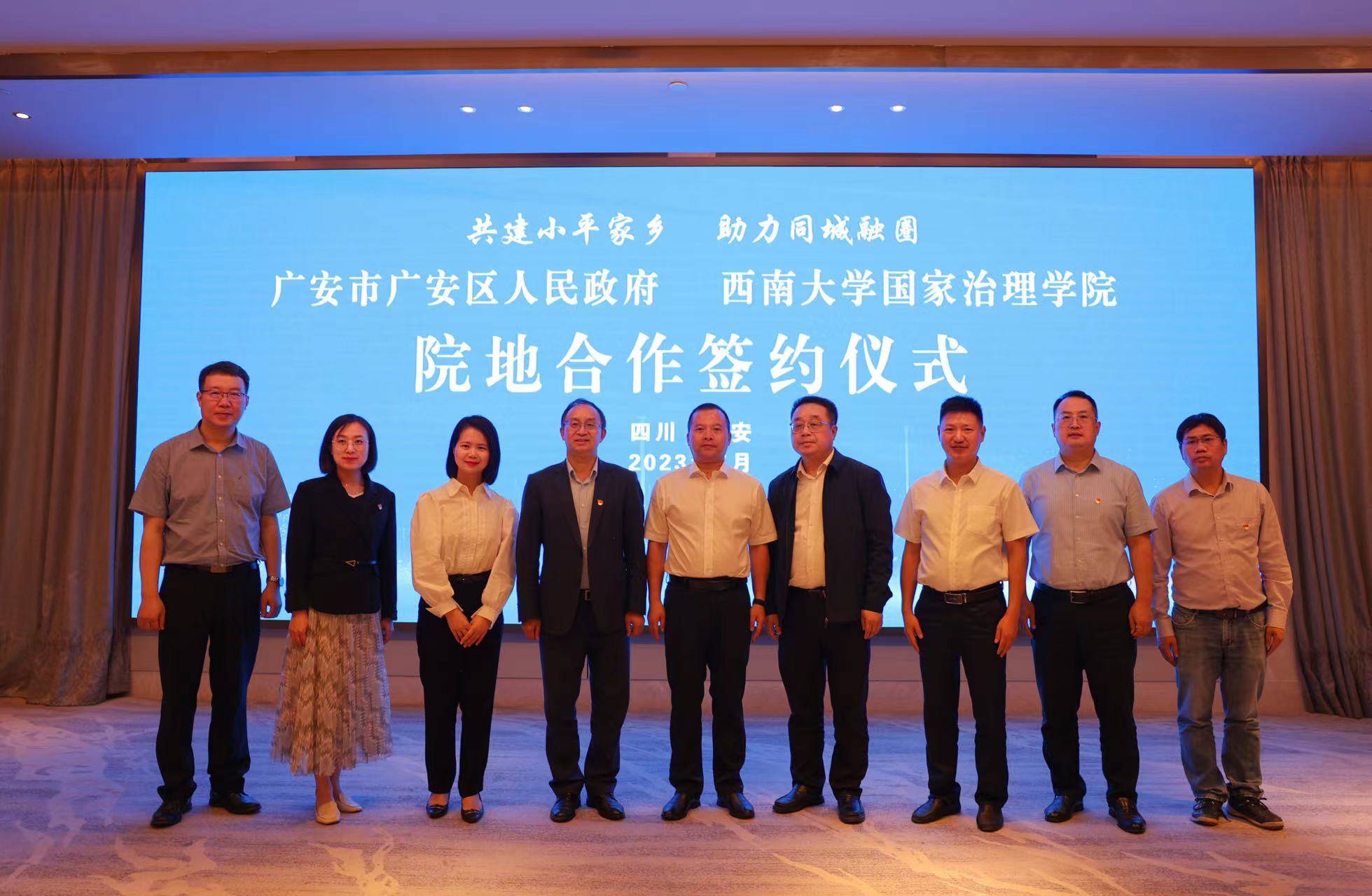 思想之旗领航向,主题教育引领学院高质量发展。参观邓小平故居后,学院与广安市广安区签订院地合作协议,现场授牌“taptap点点官方网站国家治理学院社会实践基地”。国家治理学院党委书记吴江指出,在全面深入学习贯彻党的二十大精神,扎实开展学习贯彻习近平新时代中国特色社会主义思想主题教育之际,院地合作是坚持学思用贯通、知信行统一的成功案例,院地双方以学促干,真抓实干,将以此次合作签约为起点,建好合作平台,拓宽合作领域,丰富合作内涵,实现人才培养与基层治理实践双向共赢。