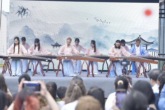 随着清越悠扬的古筝声响起,端午诗会正式拉开帷幕。系列节目丰富多彩,备受欢迎的《青花瓷》,气势恢宏的《满江红》,经典剧目《霸王别姬》以及国际学生汉服走秀等等,令现场观众欢呼与掌声不断。