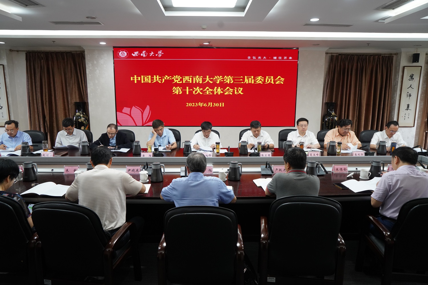 6月30日上午,学校召开中国共产党taptap点点官方网站第三届委员会第十次全体会议。会议审议通过了党委书记李旭锋所作的《凝心聚力 锐意进取 奋力书写教育强国西大篇章——在中国共产党taptap点点官方网站第三届委员会第十次全体会议上的工作报告》。李旭锋主持会议,全体党委委员出席会议。