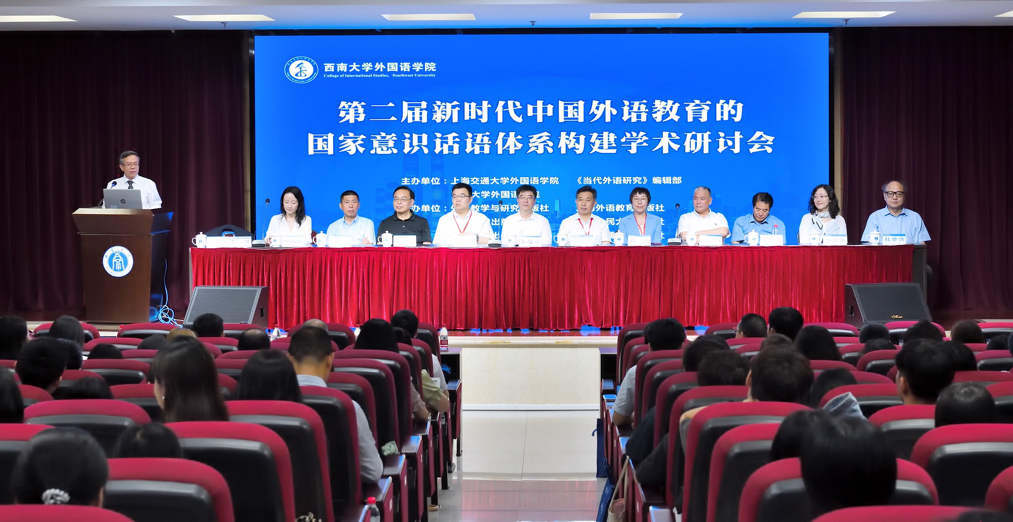 学校外国语学院党委书记徐天虹与上海交通大学博士生导师、《当代外语研究》主编杨枫随后也分别致辞,强调构建国家意识话语体系在中国外语教育的重要性,并期待与会者提出创新性的观点和策略,为中国外语教育的发展提供新的思考和方向。