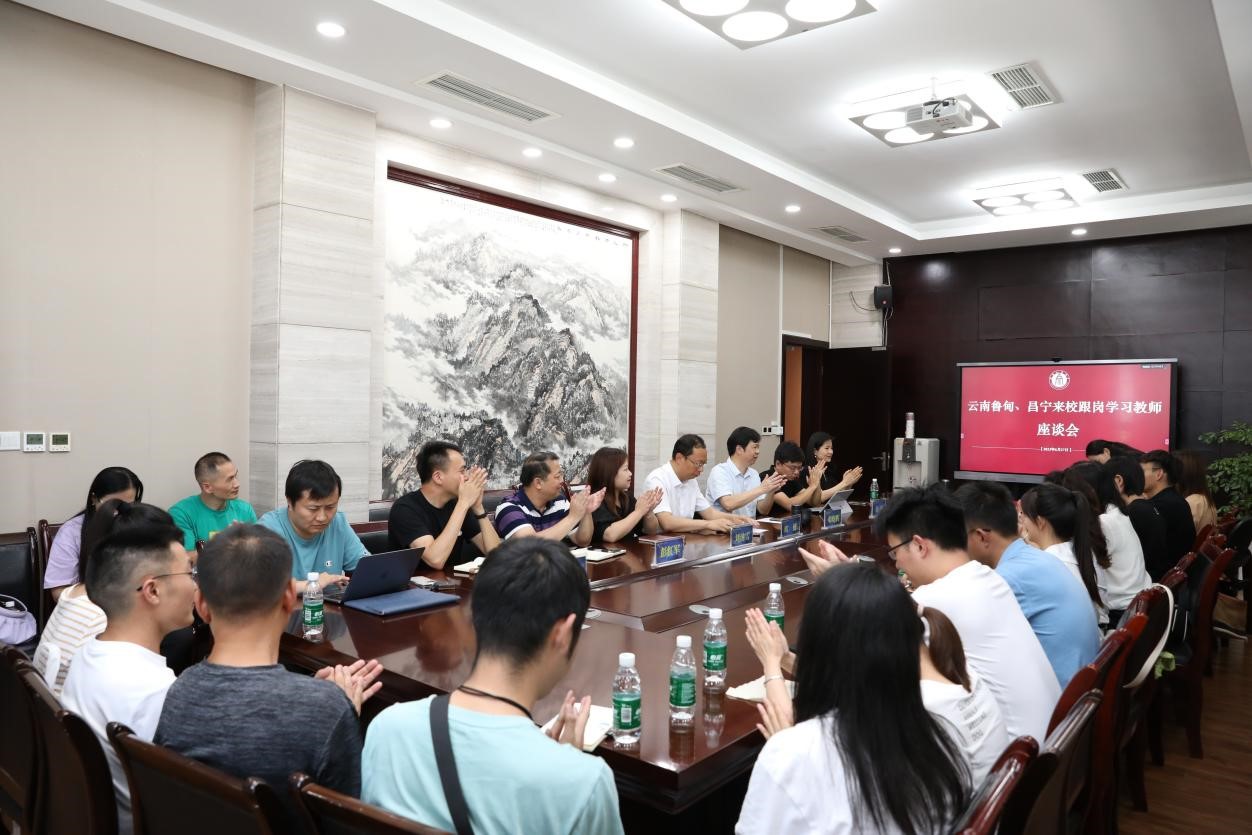 来自云南的李忠平、王洁等跟岗教师汇报了各自来校一年期间的工作情况、收获感受以及今后工作打算。他们表示,附中的教学方式、德育方式给他们带来了很多启发。这一年拓宽了视野,锻炼了能力,增长了才干,今后将继续努力工作,发挥桥梁纽带作用,积极为地区学校事业发展贡献自己的智慧和力量。